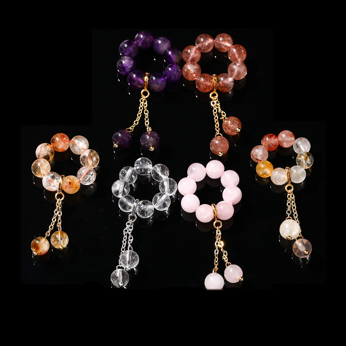 1:Quartz Rose2:Quartz aux fraises3:citrine4:Multi-inclusions Crystal5:Amethyst 3A6:Clear Quartz 5A
