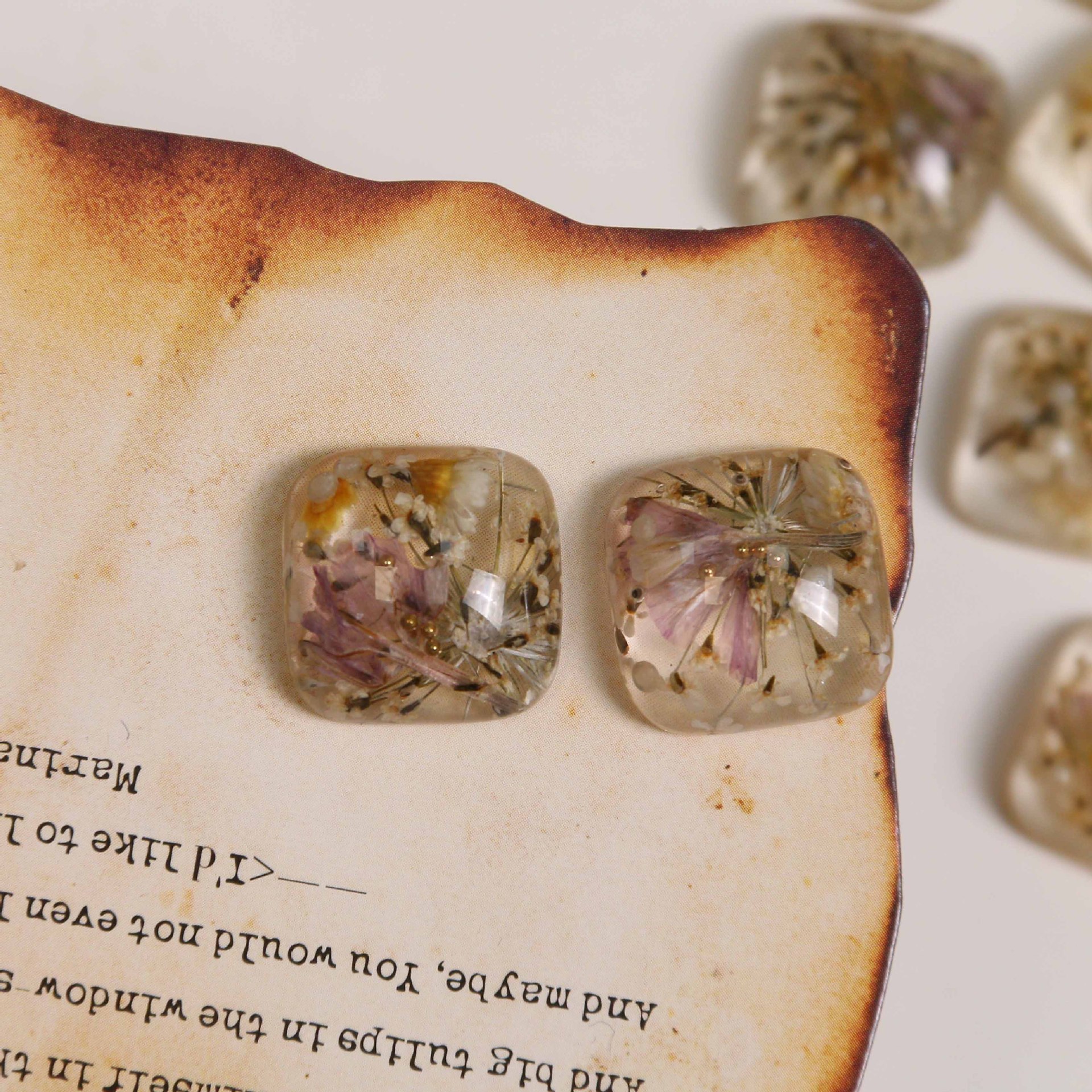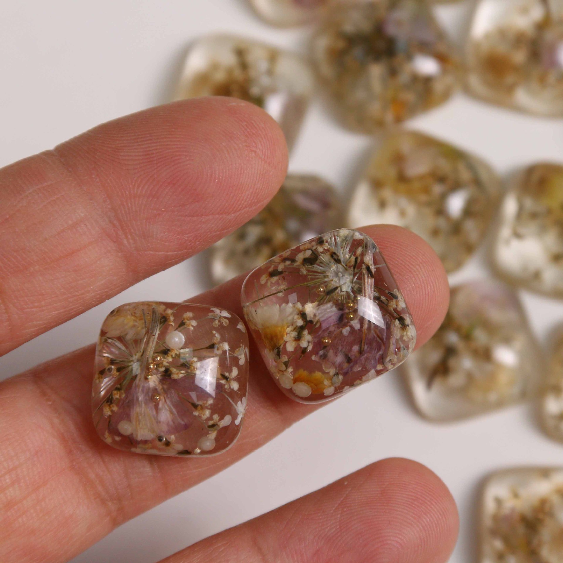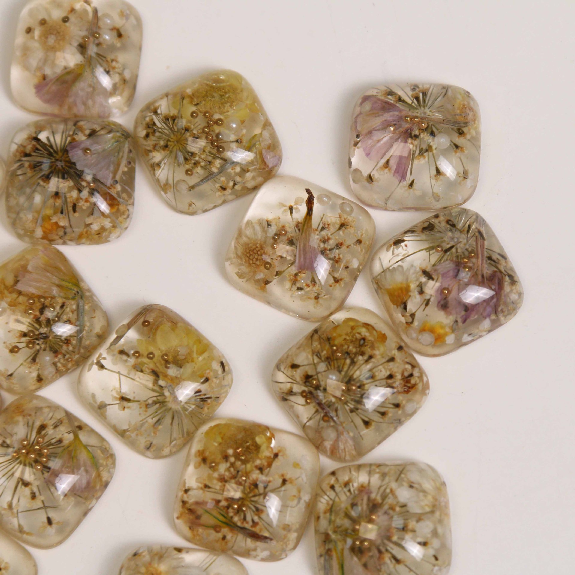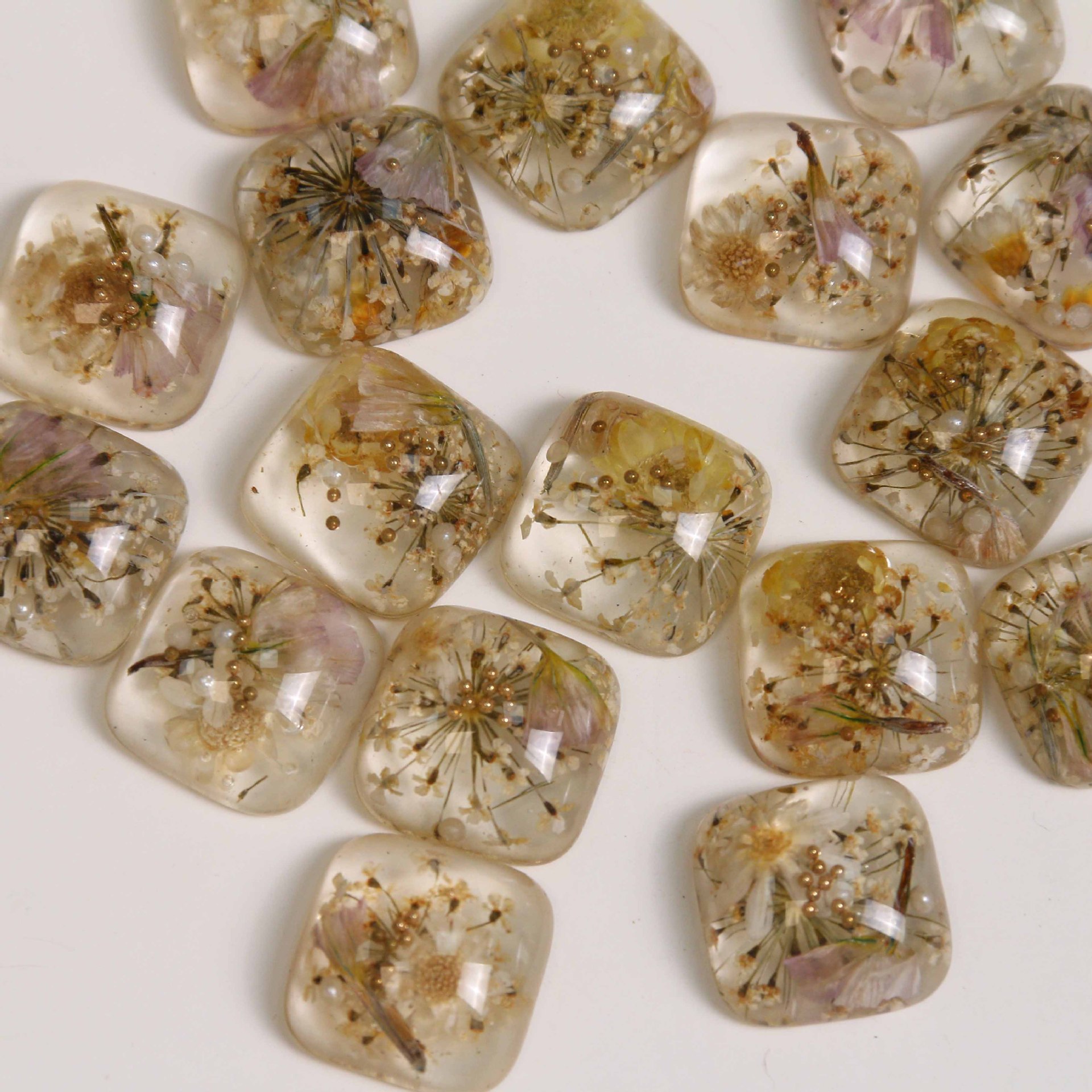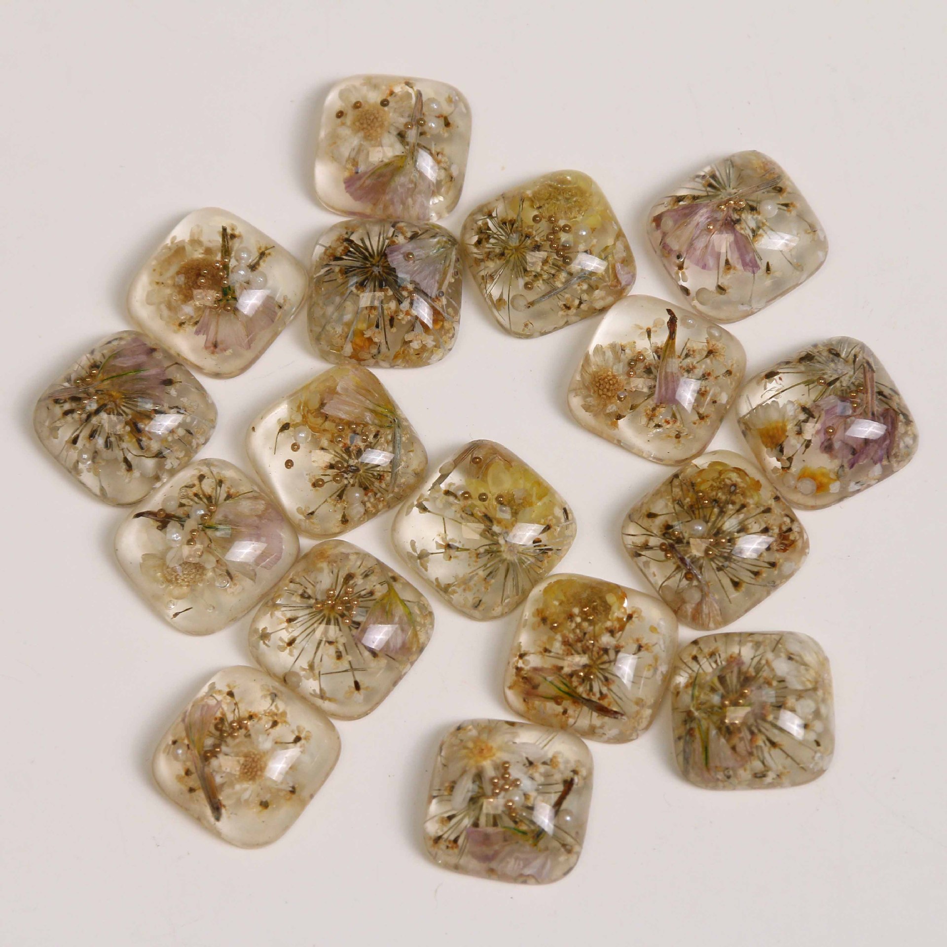 résine Composant Stud, avec Fleurs séchées, cadre, DIY, couleurs mélangées, 17mm, Vendu par PC