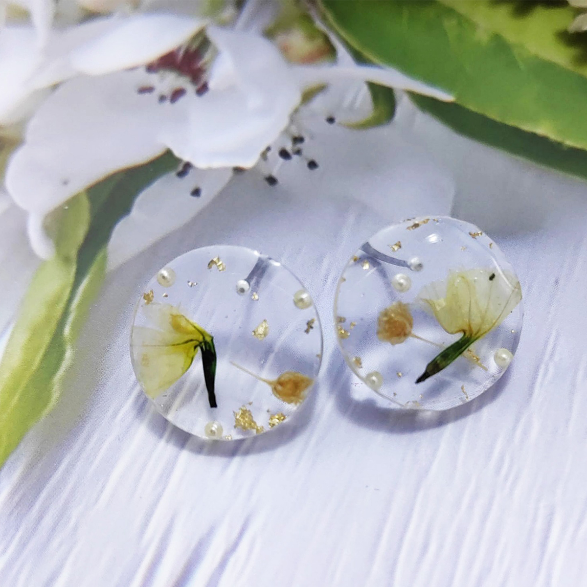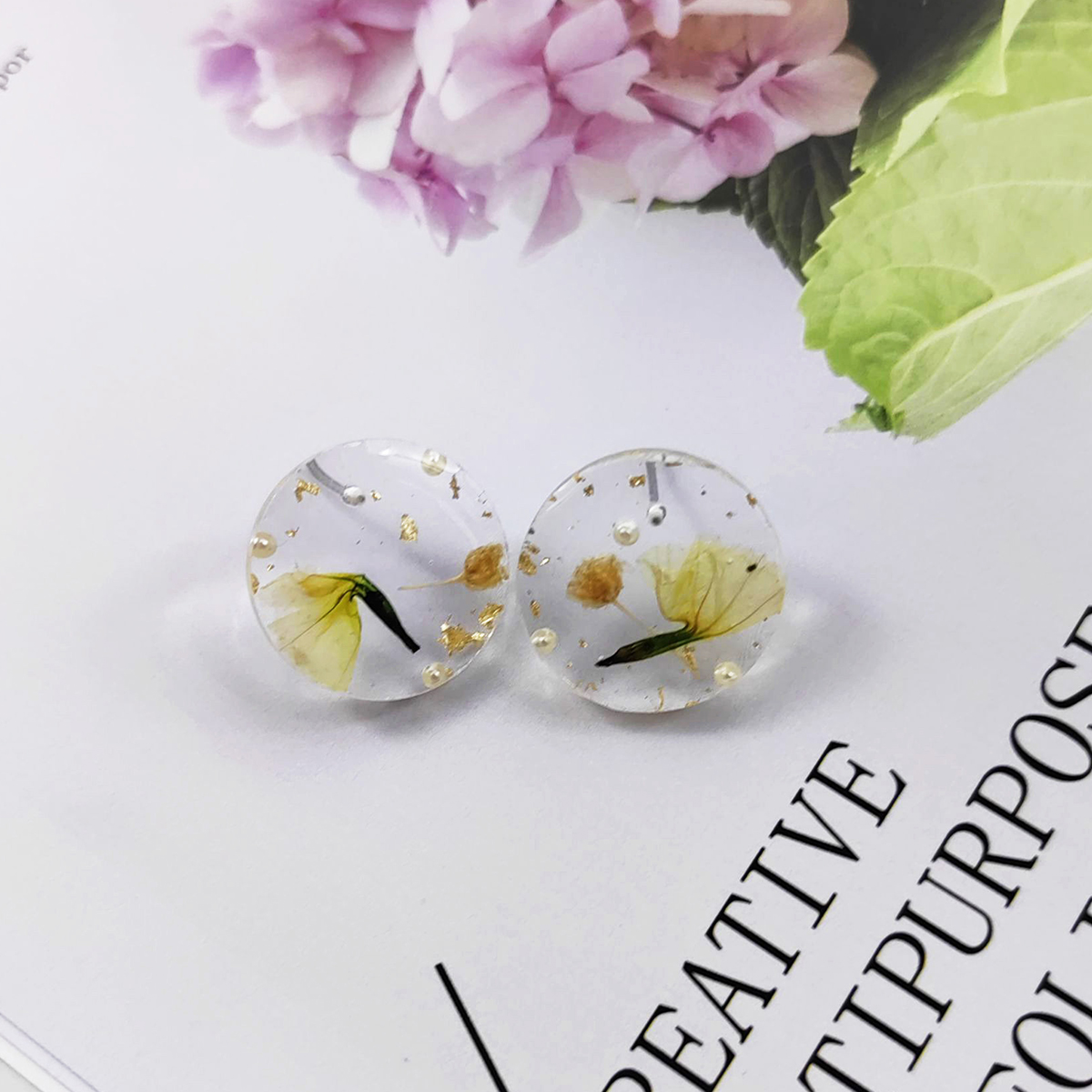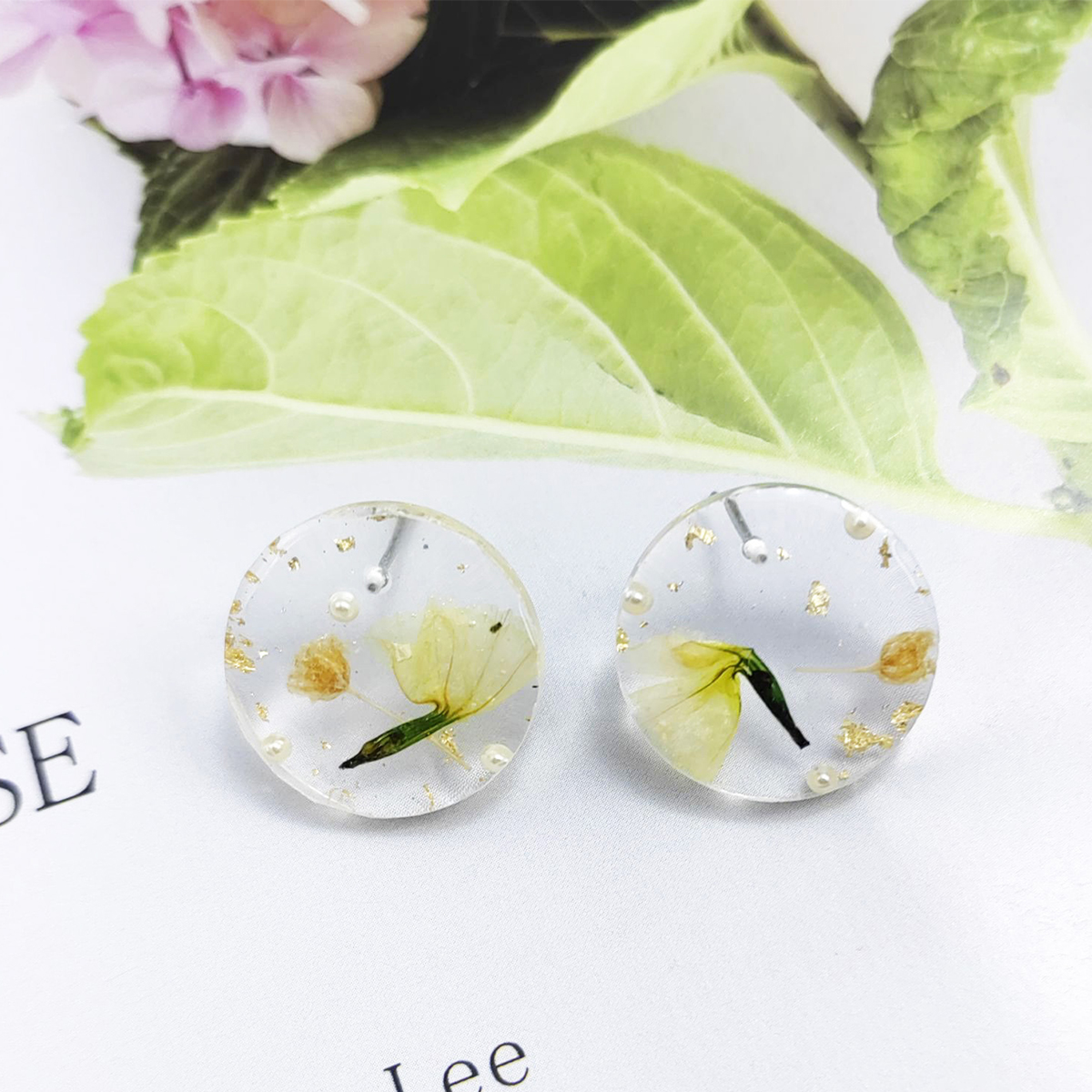 résine boucle d oreille dormeuse, avec Fleurs séchées, Rond, goutté d'époxy, bijoux de mode & pour femme, 20mm, Vendu par paire