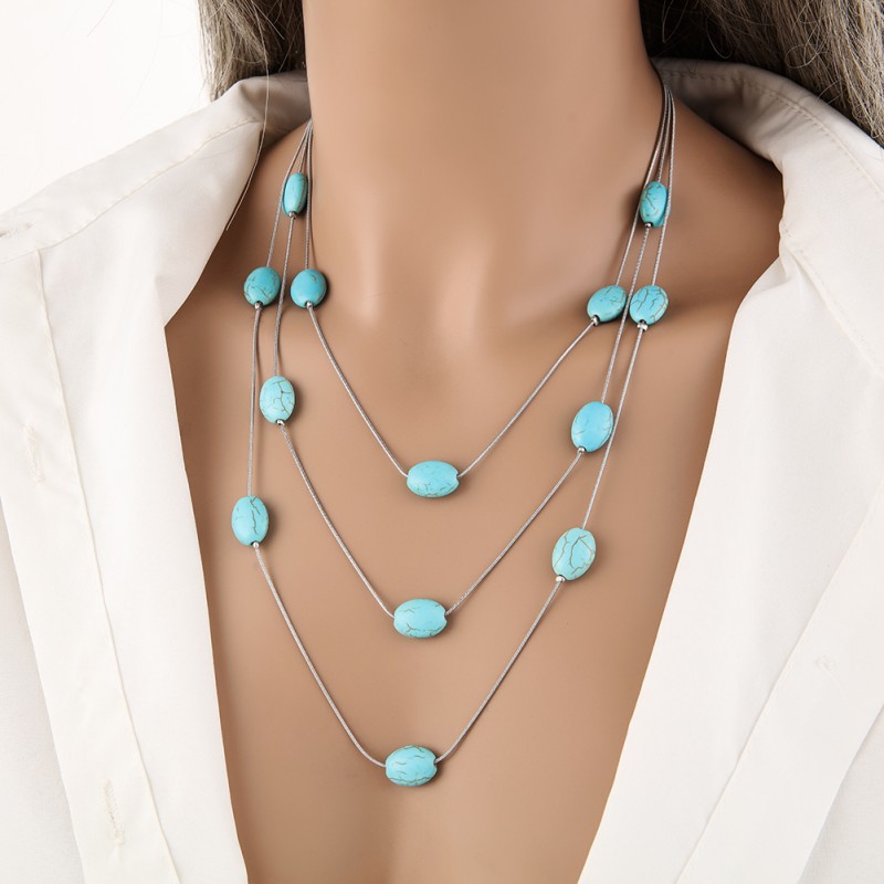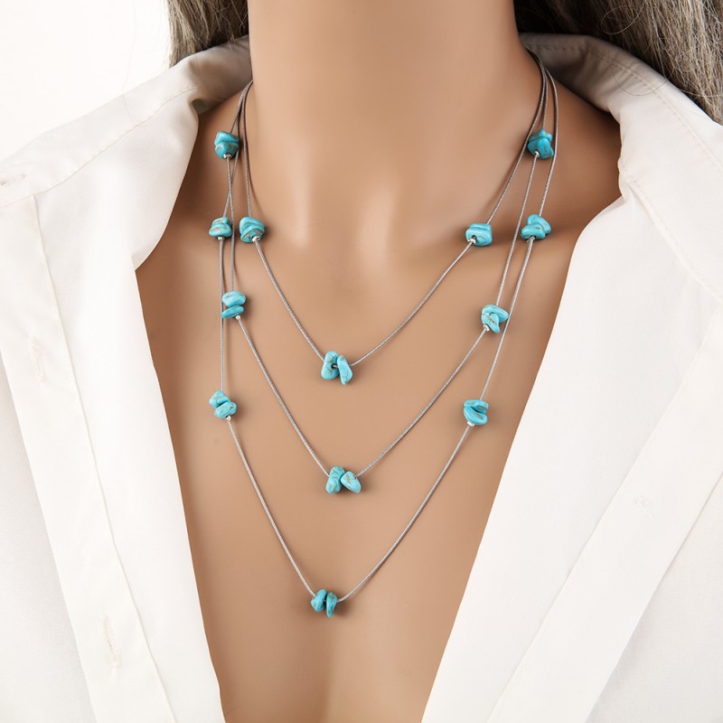 turquoise synthétique collier, avec alliage de zinc, avec 2inch chaînes de rallonge, multicouche & styles différents pour le choix & pour femme, Longueur Environ 15.7 pouce, Environ 18.1 pouce, Environ 21.7 pouce, Vendu par PC