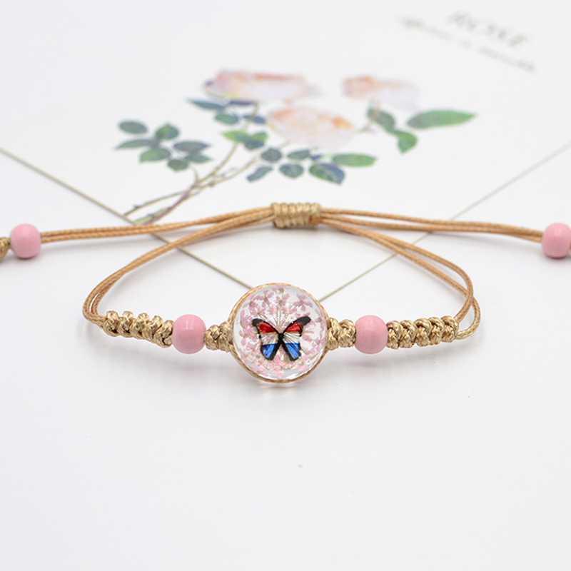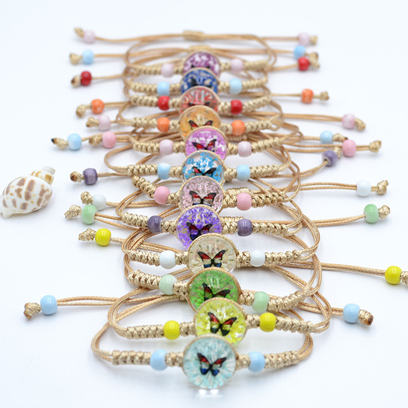 verre bracelet, avec Fleurs séchées & lacet & porcelaine & corde de cire, papillon, fait à la main, bijoux de mode & pour femme, plus de couleurs à choisir, Longueur Environ 6-10 pouce, Vendu par PC