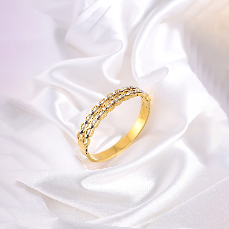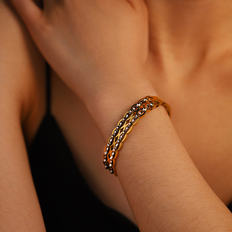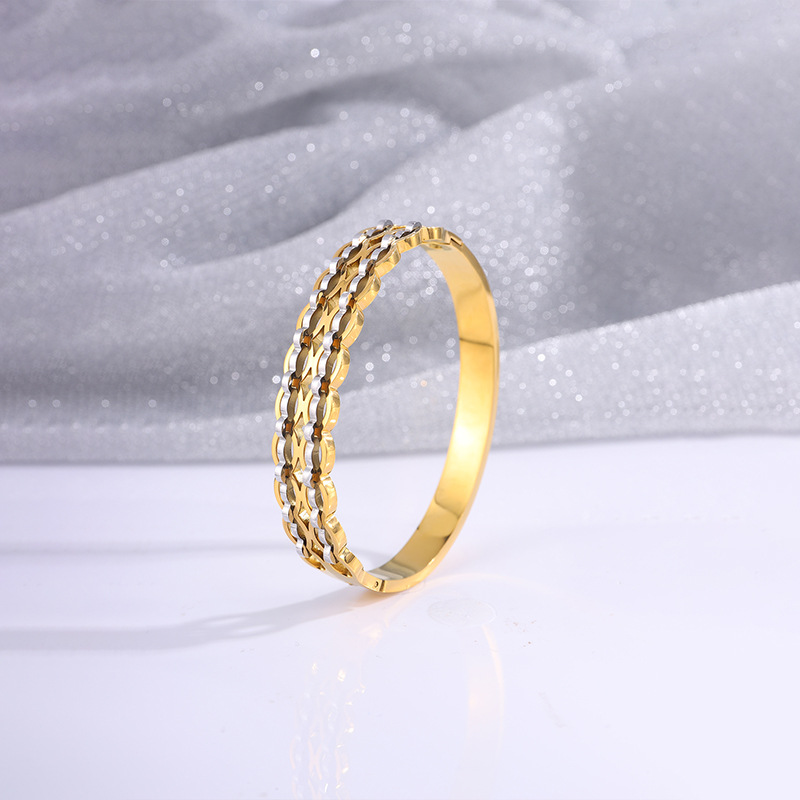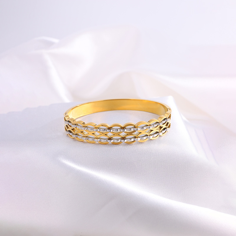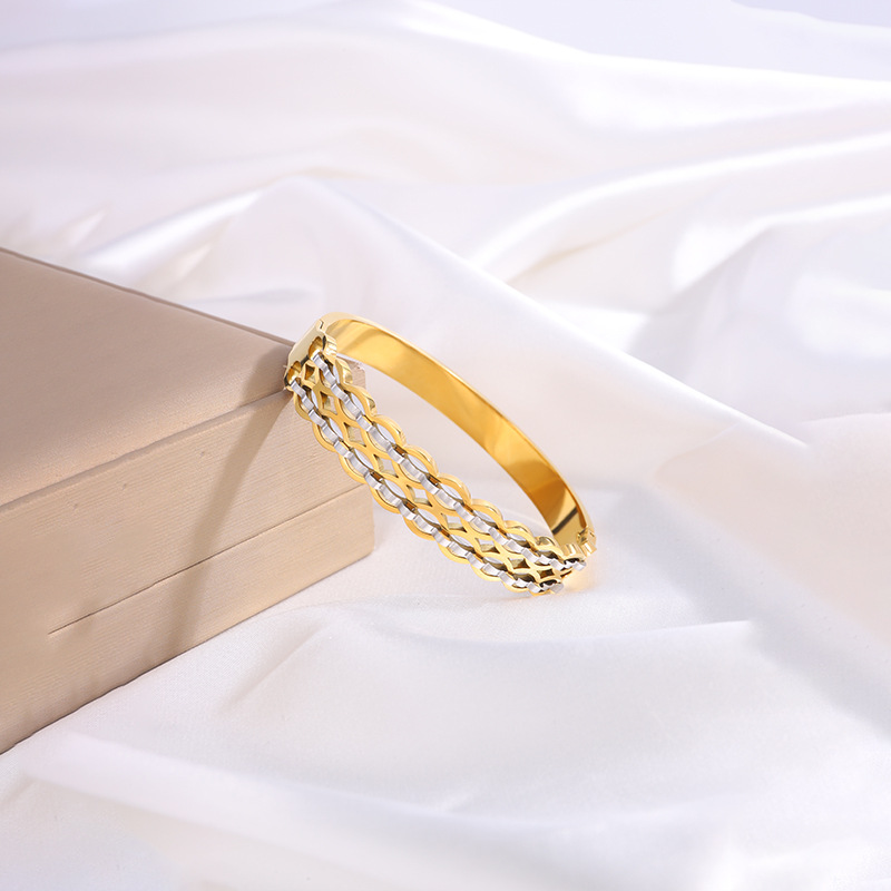 304 Cruach dhosmálta Bangle, 18K ór plátáilte, do bhean & dhá ton & log, Díolta De réir PC