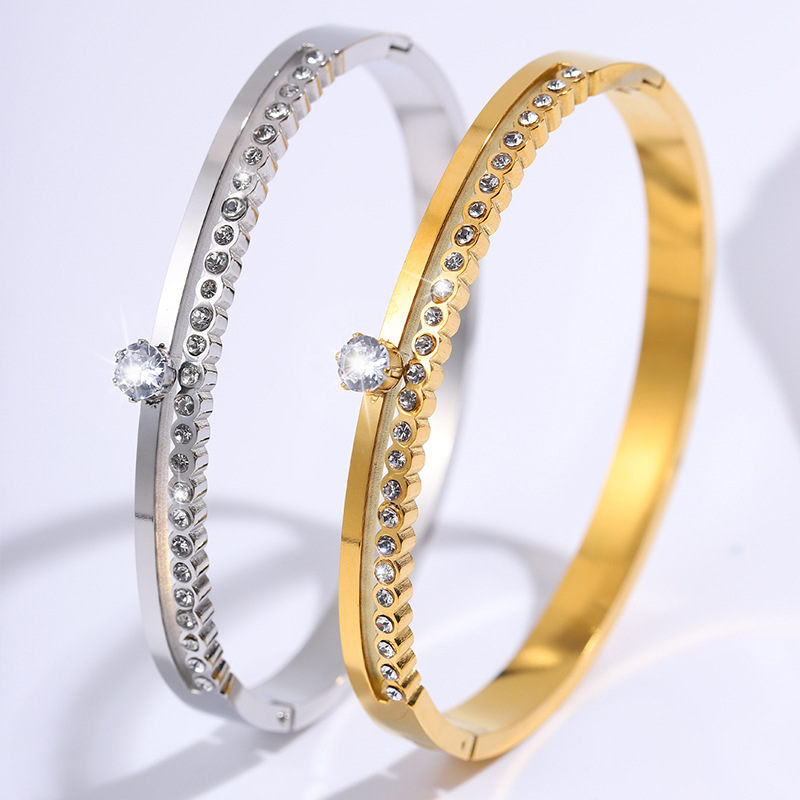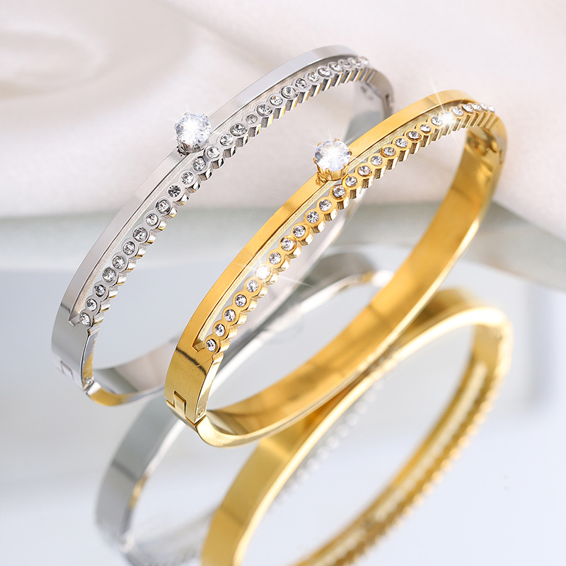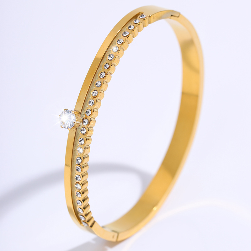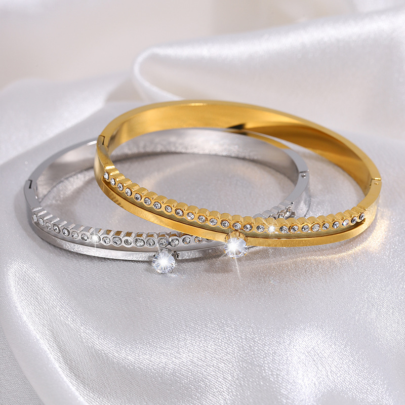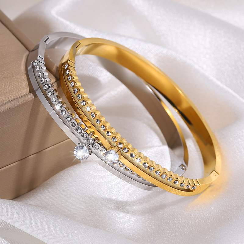 Cruach dhosmálta Bangle, 304 Cruach dhosmálta, 18K ór plátáilte, stíleanna éagsúla do rogha & do bhean & le rhinestone, Díolta De réir PC