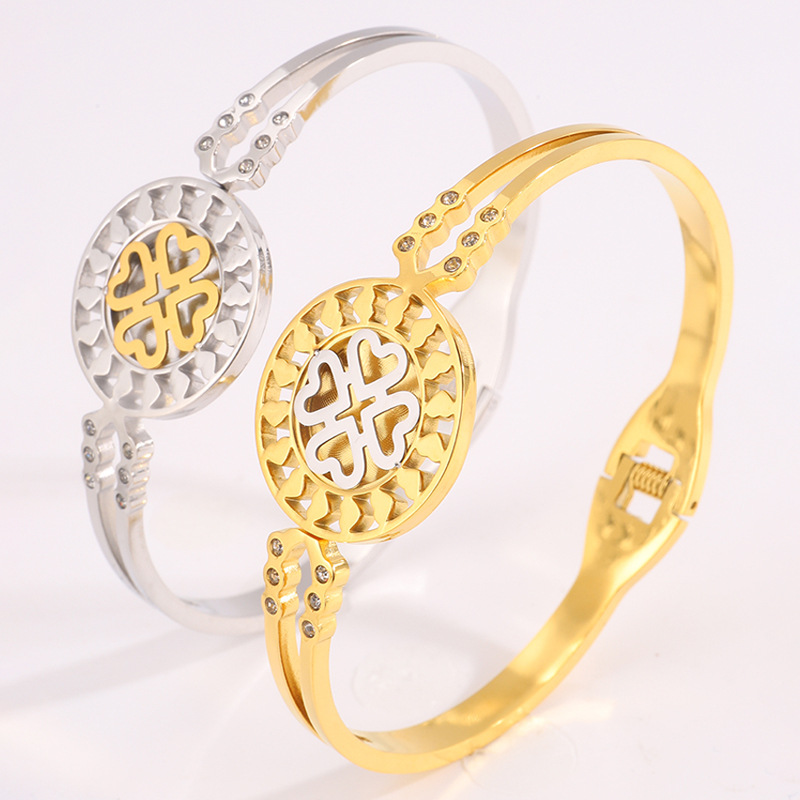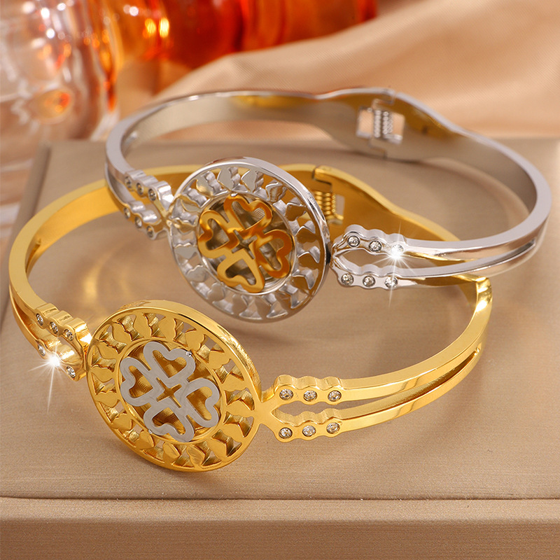 Cruach dhosmálta Bangle, 304 Cruach dhosmálta, 18K ór plátáilte, stíleanna éagsúla do rogha & do bhean & le rhinestone, Díolta De réir PC