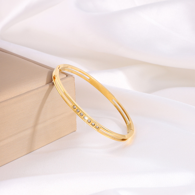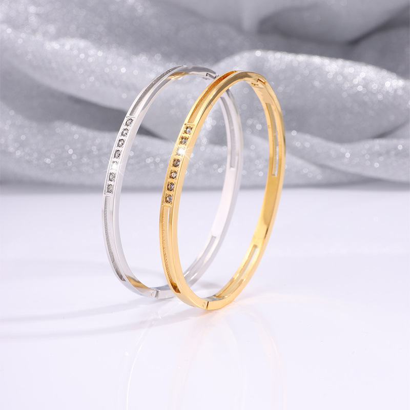Cruach dhosmálta Bangle, 304 Cruach dhosmálta, 18K ór plátáilte, stíleanna éagsúla do rogha & do bhean & le rhinestone, Díolta De réir PC