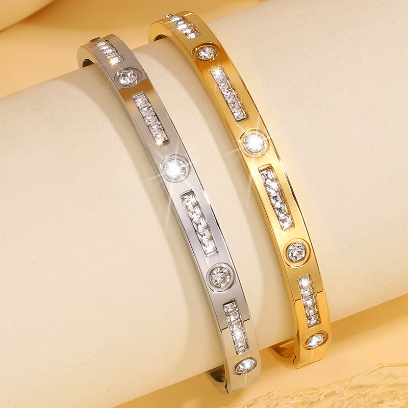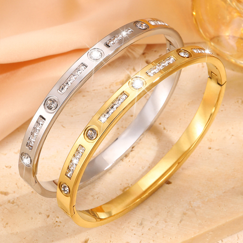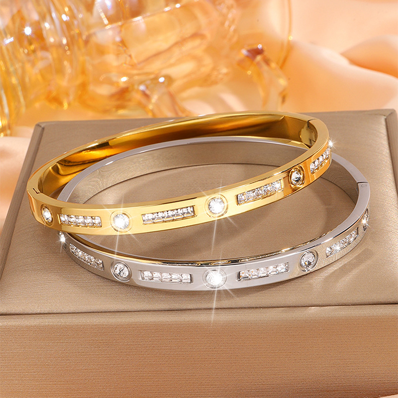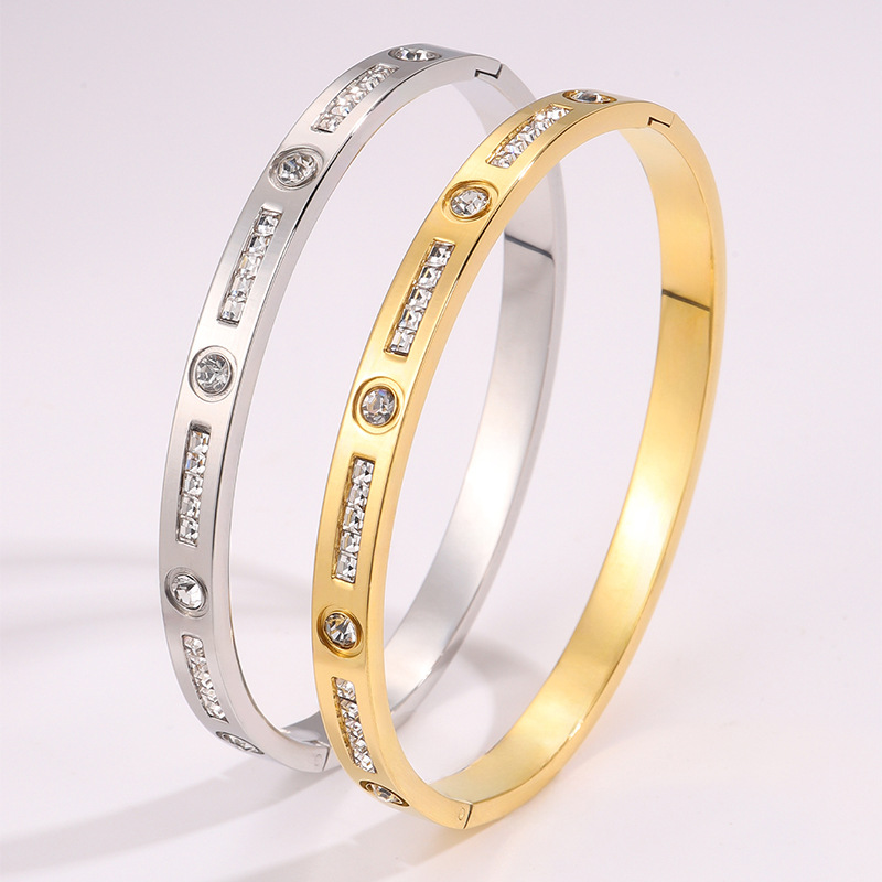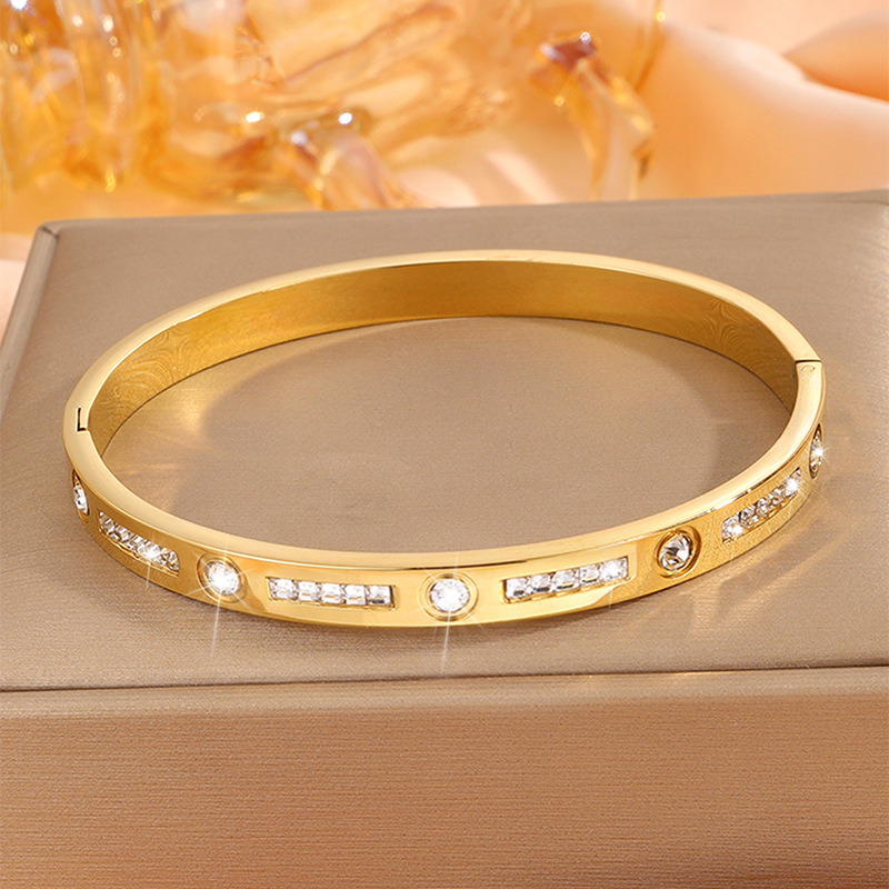 Cruach dhosmálta Bangle, 304 Cruach dhosmálta, 18K ór plátáilte, stíleanna éagsúla do rogha & do bhean & le rhinestone, Díolta De réir PC