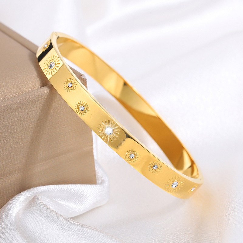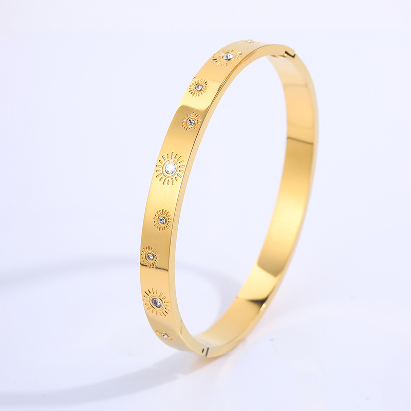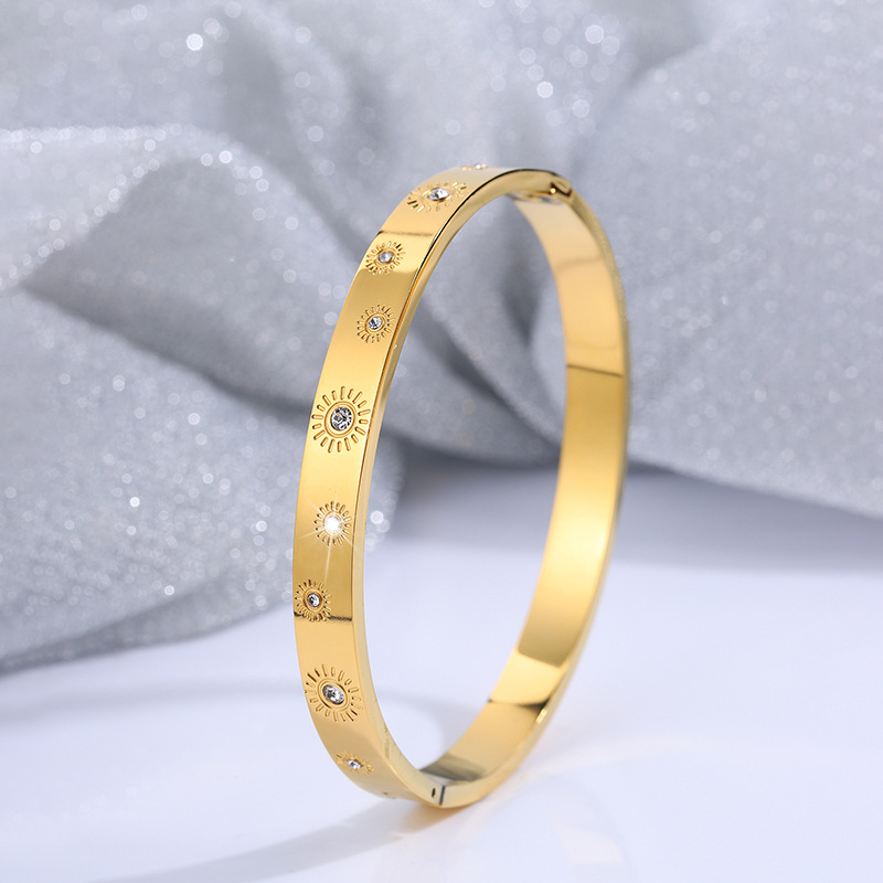 Cruach dhosmálta Bangle, 304 Cruach dhosmálta, 18K ór plátáilte, stíleanna éagsúla do rogha & do bhean & le rhinestone, Díolta De réir PC