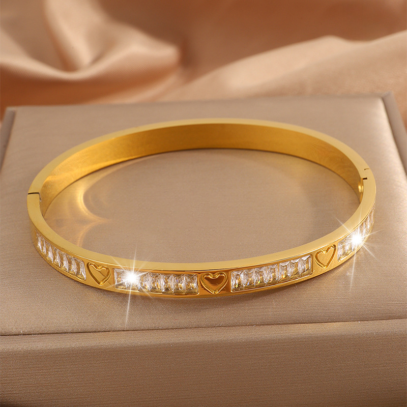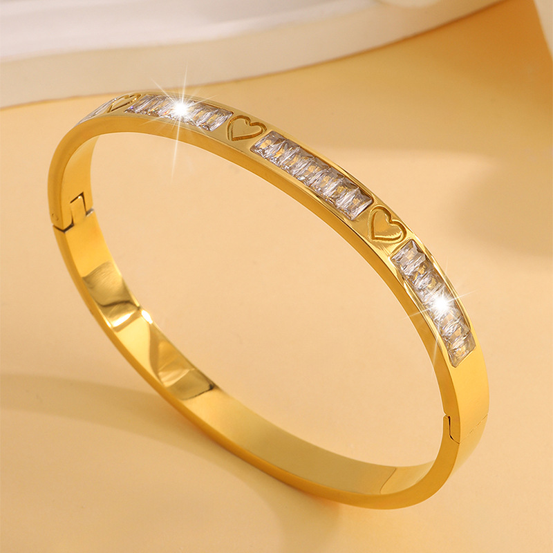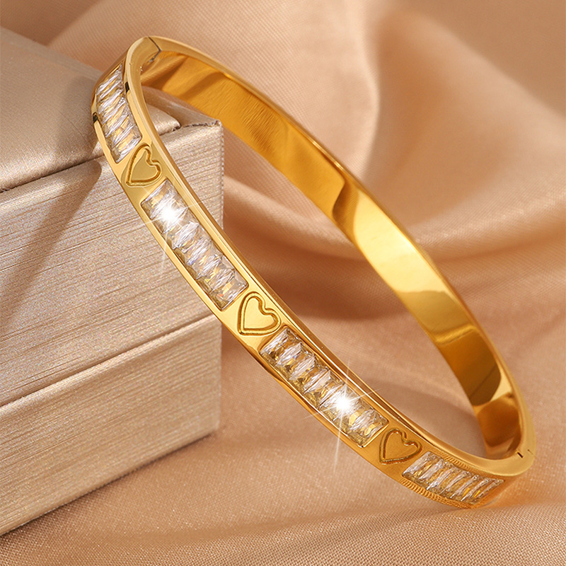 Cruach dhosmálta Bangle, 304 Cruach dhosmálta, 18K ór plátáilte, stíleanna éagsúla do rogha & do bhean & le rhinestone, Díolta De réir PC