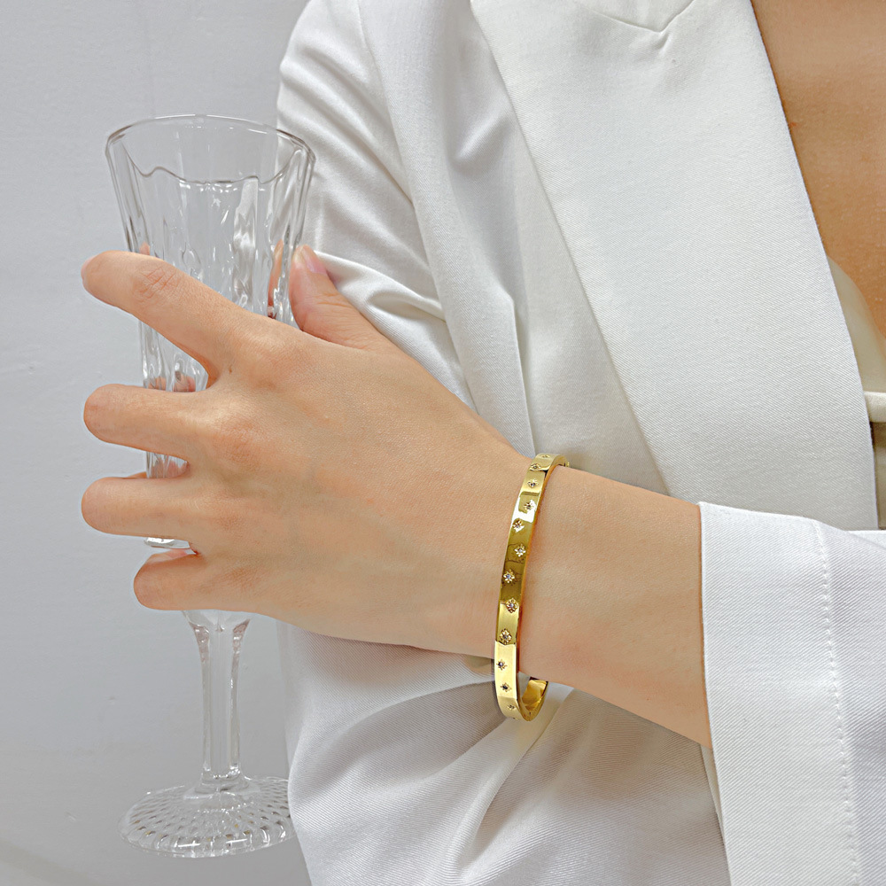 Cruach dhosmálta Bangle, 304 Cruach dhosmálta, 18K ór plátáilte, stíleanna éagsúla do rogha & do bhean & le rhinestone, Díolta De réir PC