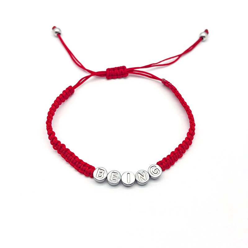 304 Cruach dhosmálta Bracelet, le Corda terylene, le 2.1inch slabhra extender, Litir Aibítir, lámhdhéanta, unisex & inchoigeartaithe, dearg, Fad Thart 5.5 Inse, Díolta De réir PC
