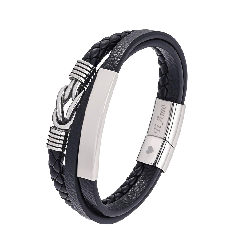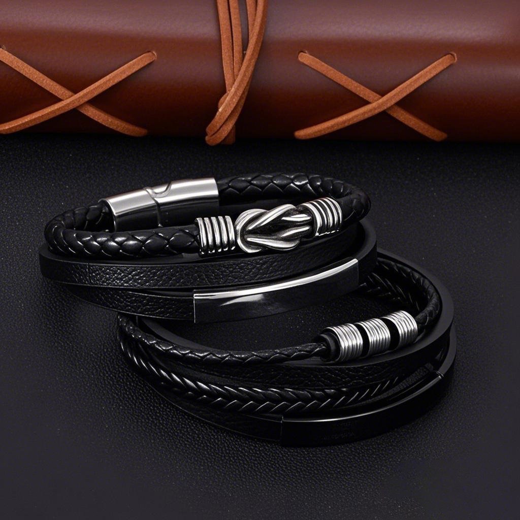 304 Cruach dhosmálta Bracelet, le PU, méid éagsúla do rogha & stíleanna éagsúla do rogha & do fear, dubh, Díolta De réir PC