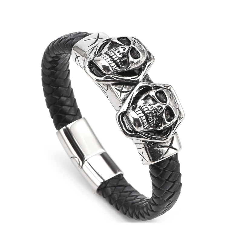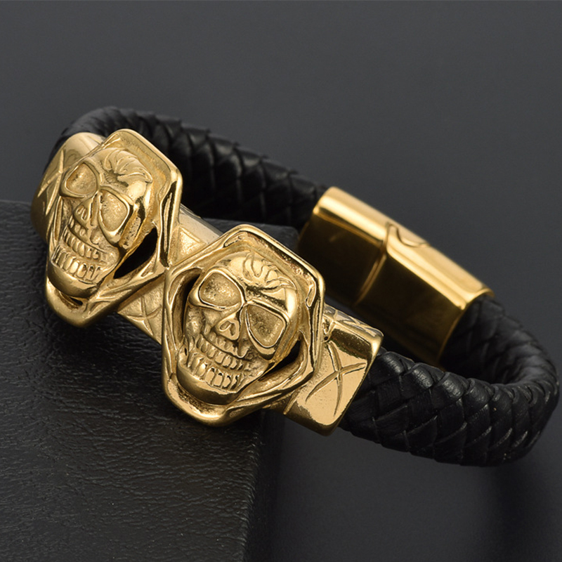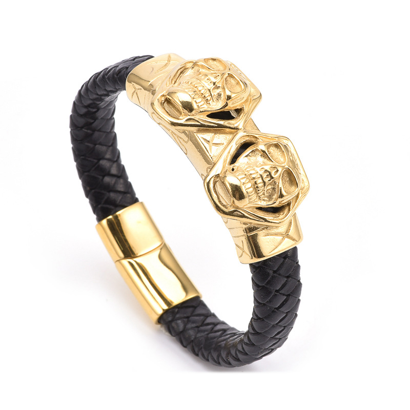 304 Cruach dhosmálta Bracelet, le Cruach Tíotáiniam & PU, Blaosc, plátáilte, stíl Punc & unisex, dathanna níos mó le haghaidh rogha, Fad Thart 8.5 Inse, Díolta De réir PC