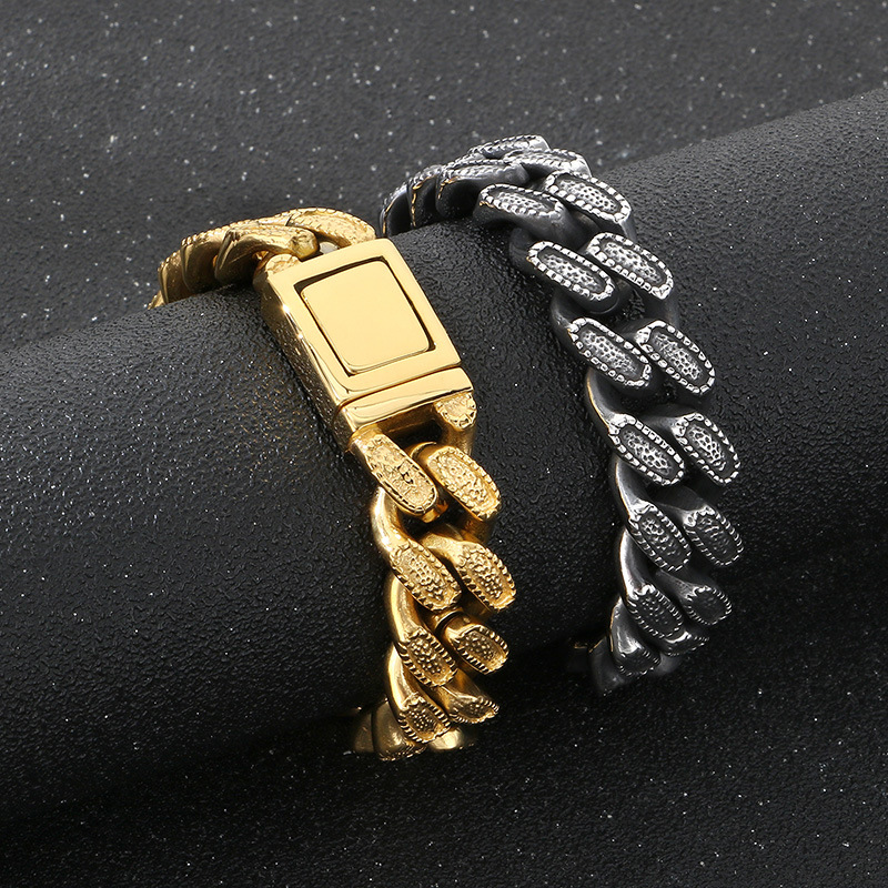Jewelry Cruach dhosmálta Bracelet, 304 Cruach dhosmálta, le Obsidian & Agate Black, dath an óir plated, jewelry faisin, dathanna níos mó le haghaidh rogha, 170x120x10mm, Díolta De réir PC