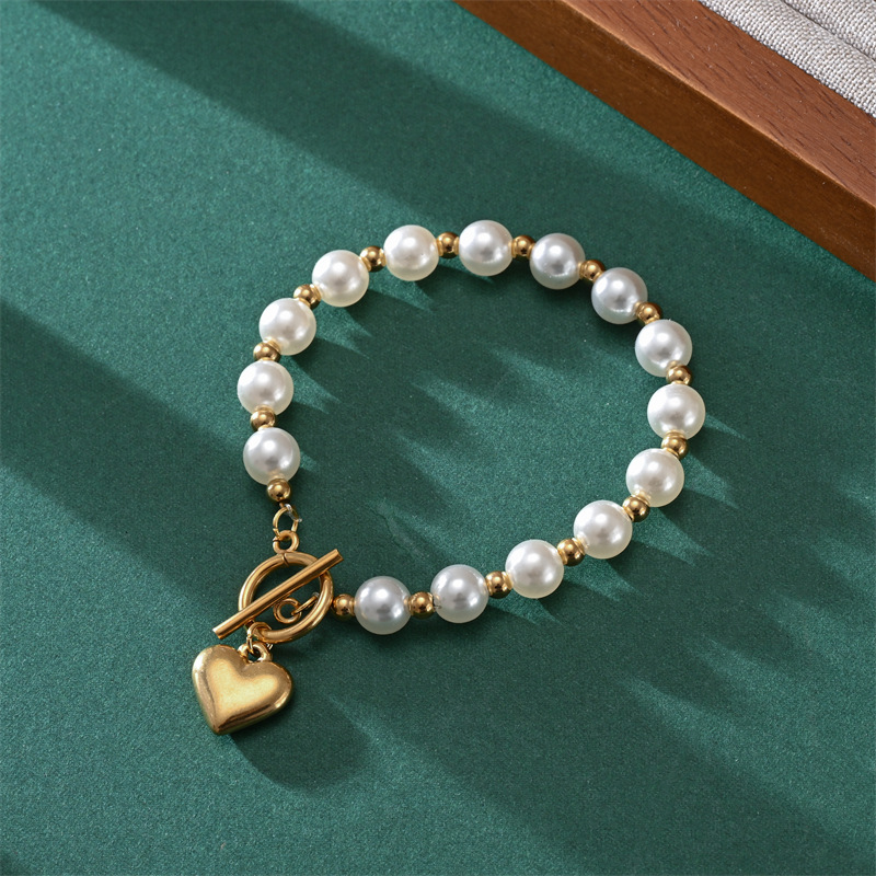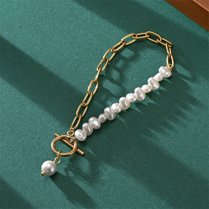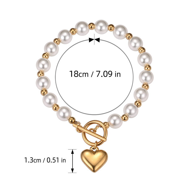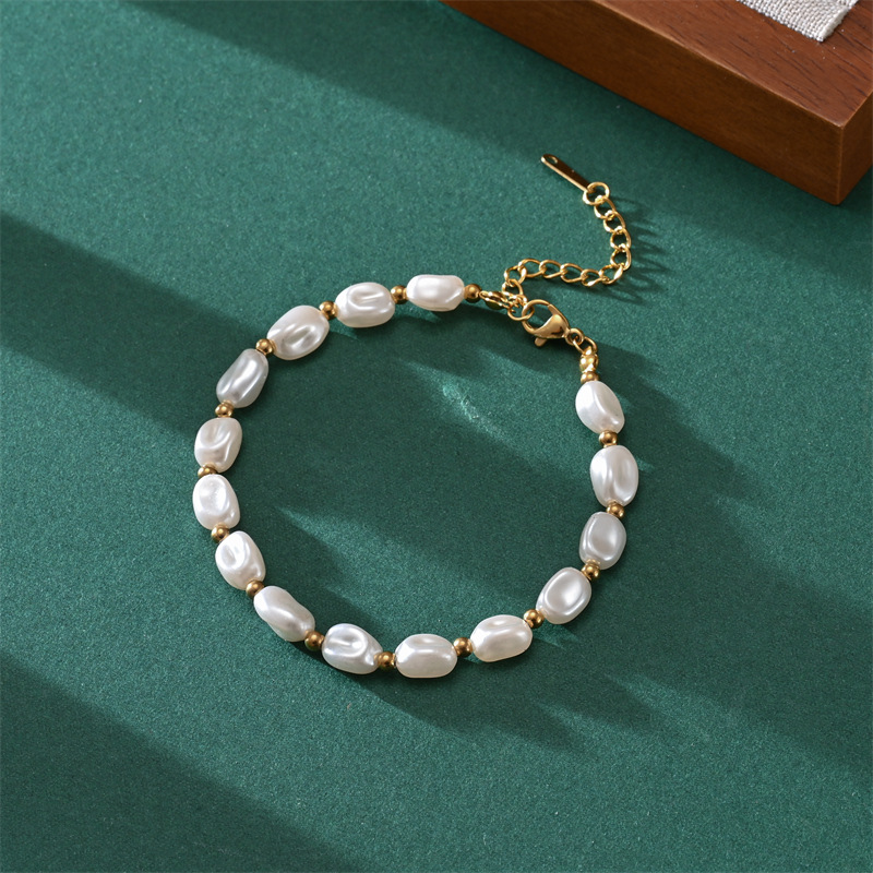 304 Cruach dhosmálta Bracelet, le Pearl Plaisteacha, dath an óir plated, stíleanna éagsúla do rogha & do bhean, Fad Thart 7.09 Inse, Díolta De réir PC