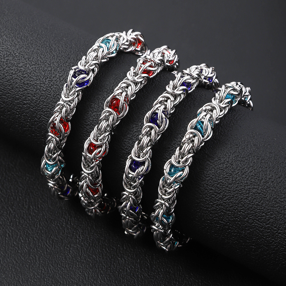 304 Cruach dhosmálta Bracelet, le Gemstone Syntéiseach, snasta, jewelry faisin & do fear, dathanna níos mó le haghaidh rogha, Díolta De réir PC