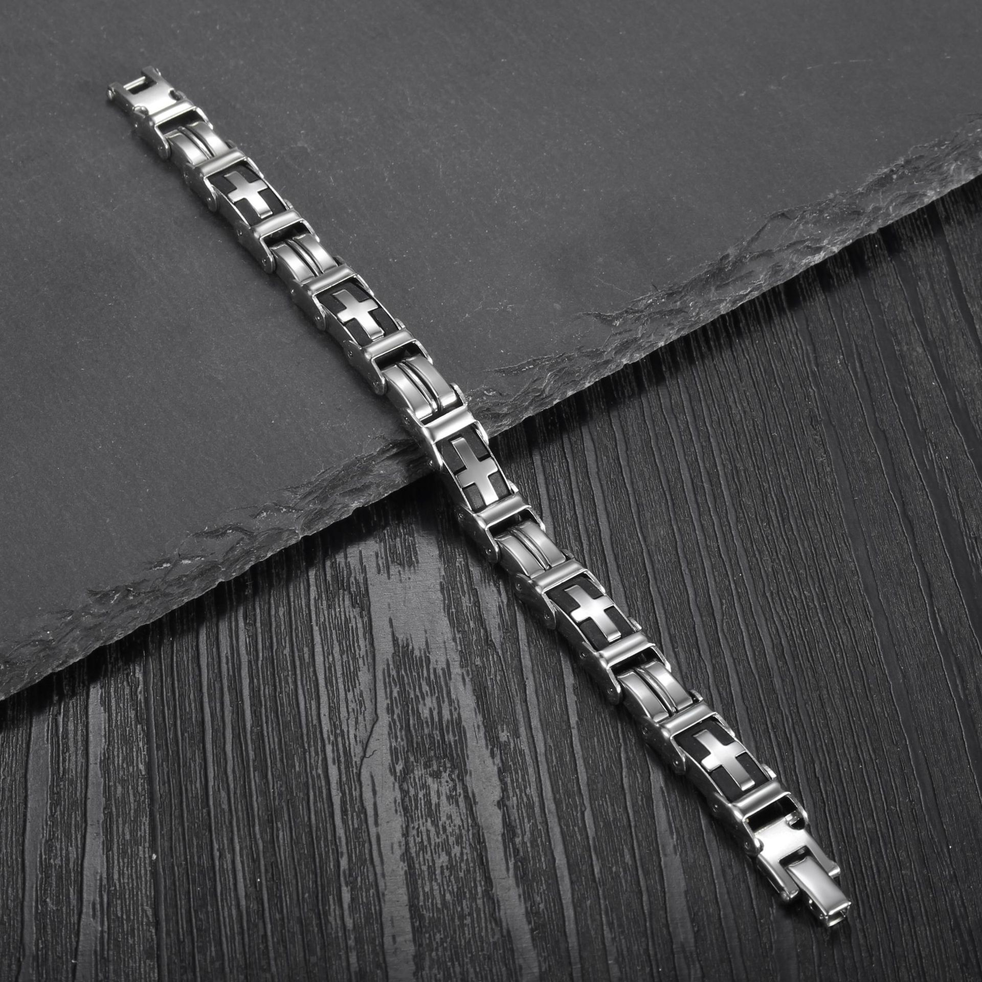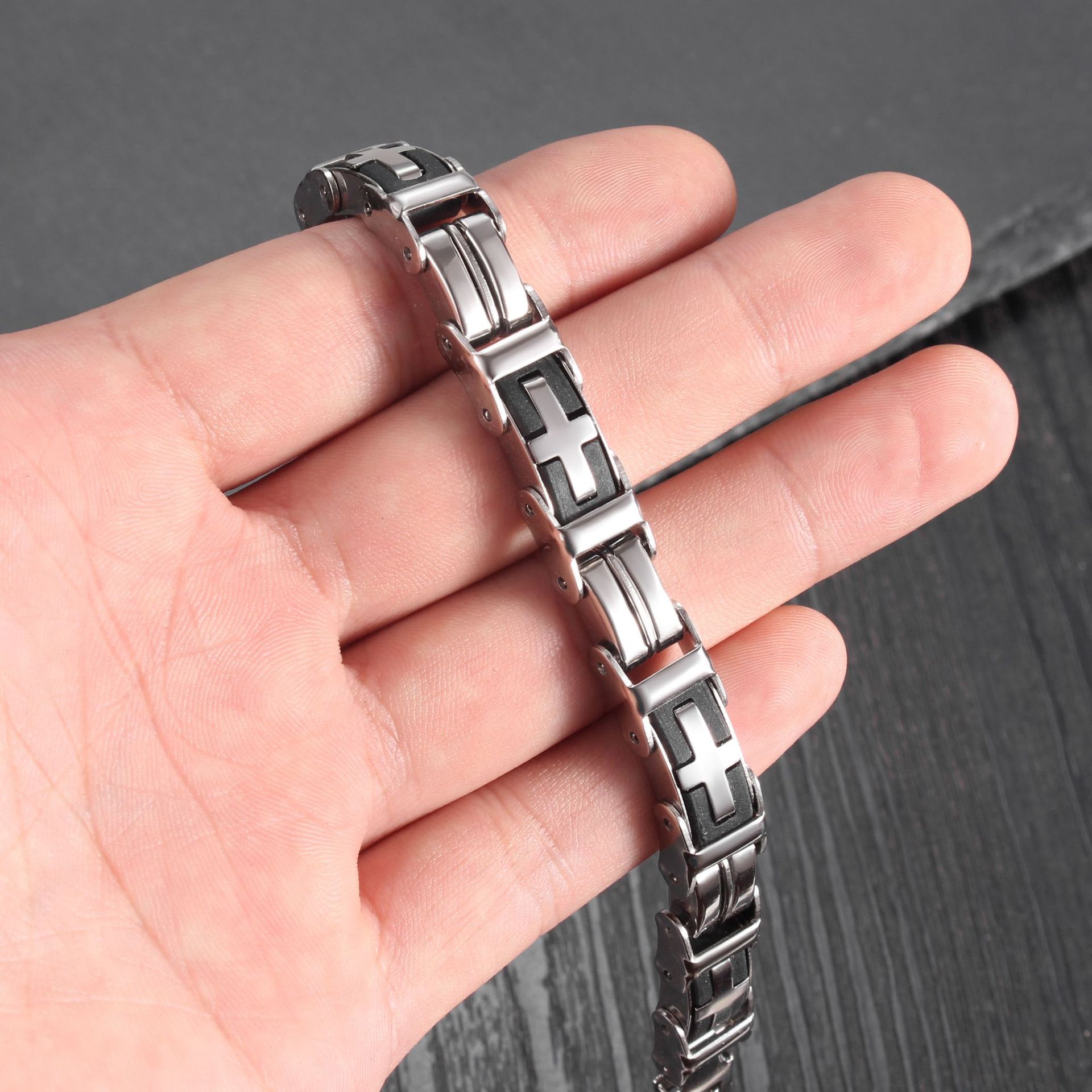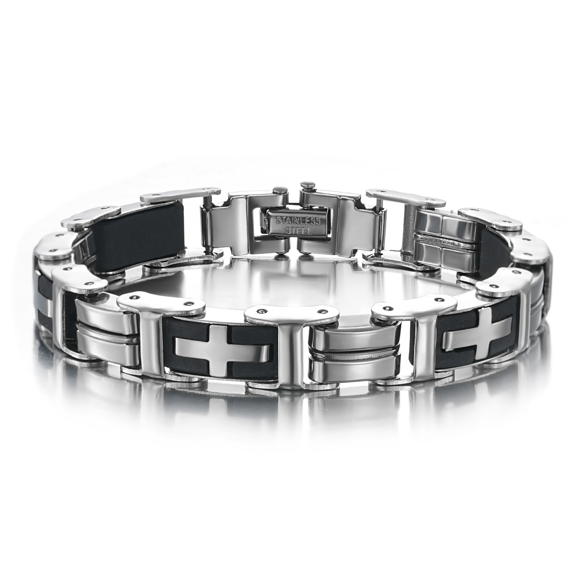 304 Cruach dhosmálta Bracelet, le Silicone, Cross, snasta, jewelry faisin & do fear, dath bunaidh, 210x10mm, Díolta De réir PC