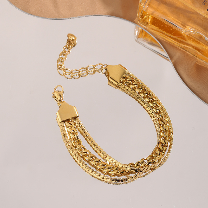 304 Cruach dhosmálta Bracelet, dath an óir plated, trí shraith & do bhean, Fad Thart 6-7 Inse, Díolta De réir PC