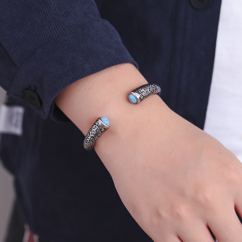304 Cruach dhosmálta Chufa Bangle, le turquoise, jewelry faisin & unisex, dath bunaidh, Díolta De réir PC