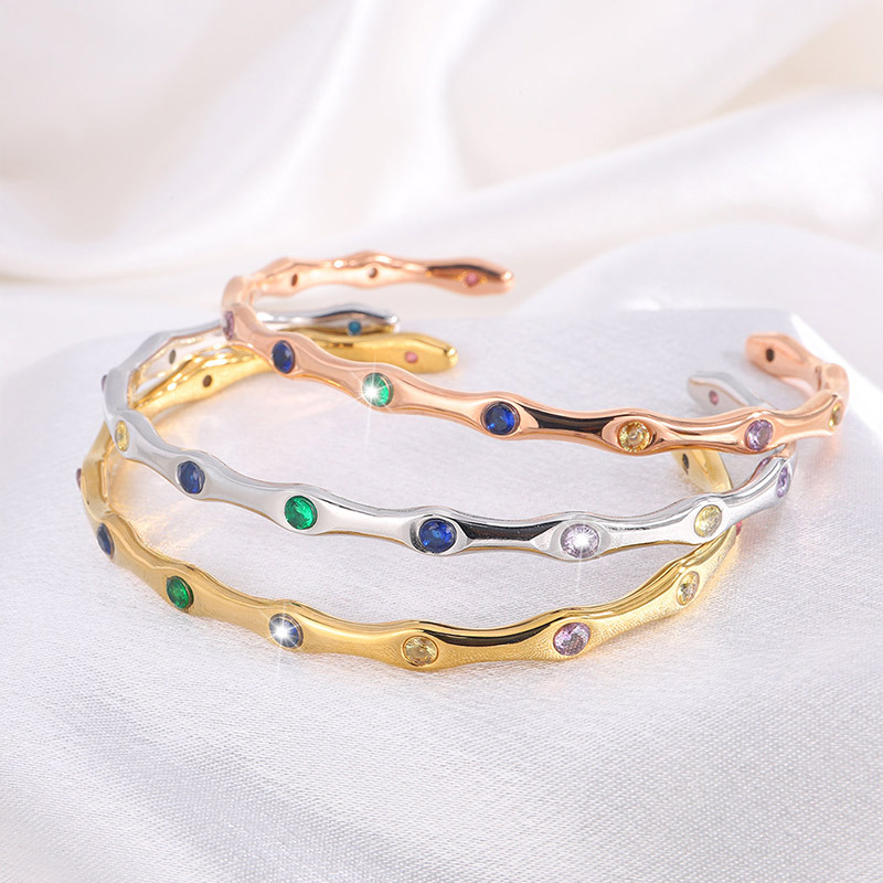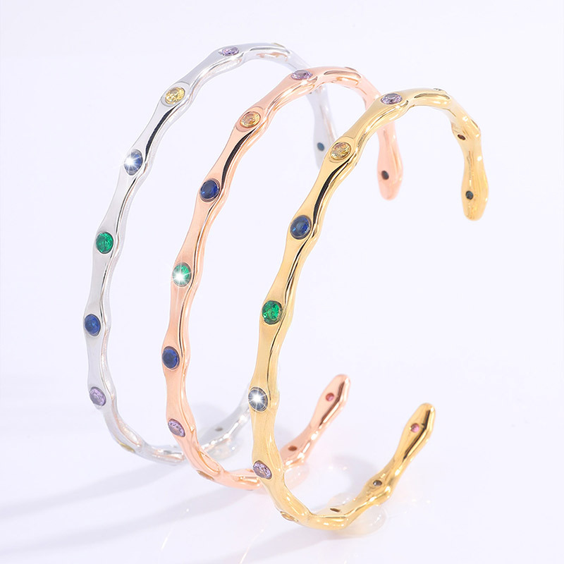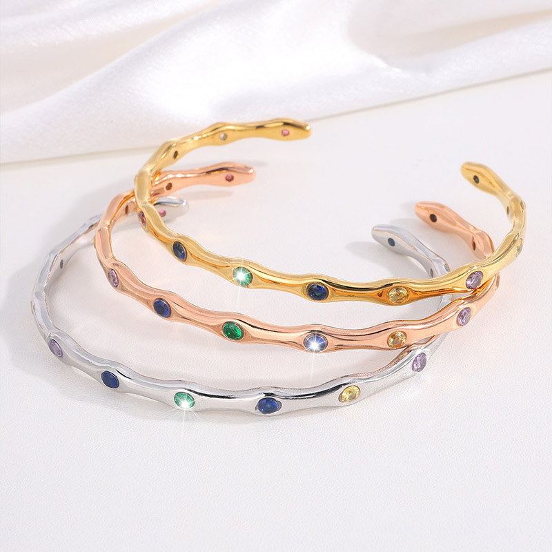 Cruach dhosmálta Bangle, 304 Cruach dhosmálta, 18K ór plátáilte, stíleanna éagsúla do rogha & do bhean & le rhinestone, Díolta De réir PC