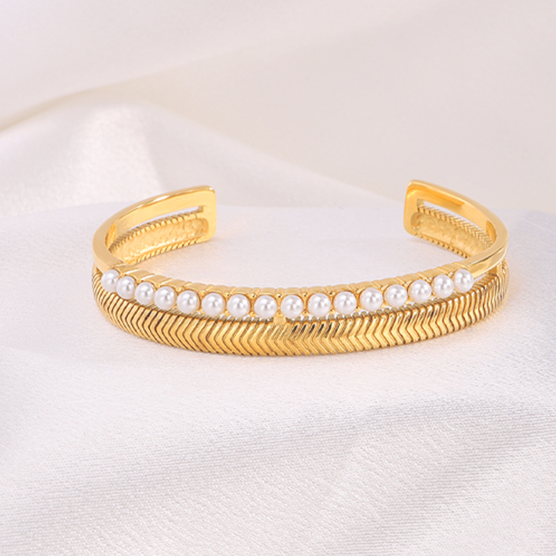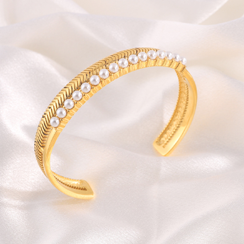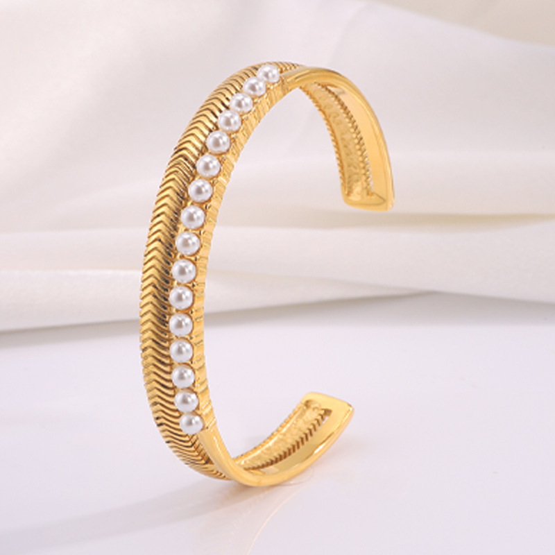 Cruach dhosmálta Bangle, 304 Cruach dhosmálta, le ABS Pearl plaisteach, dath an óir plated, jewelry faisin & dearaí éagsúla do rogha, órga, Díolta De réir PC