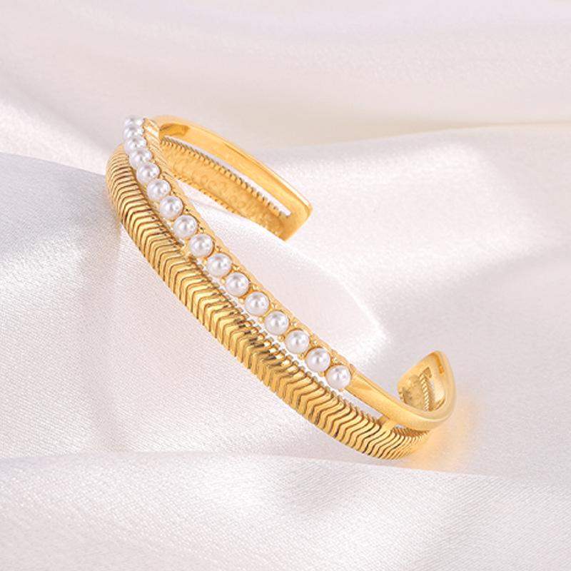 304 Cruach dhosmálta Chufa Bangle, le Pearl Plaisteacha, jewelry faisin & do bhean, órga, Inner diameter :60mm, width :8mm, Díolta De réir PC