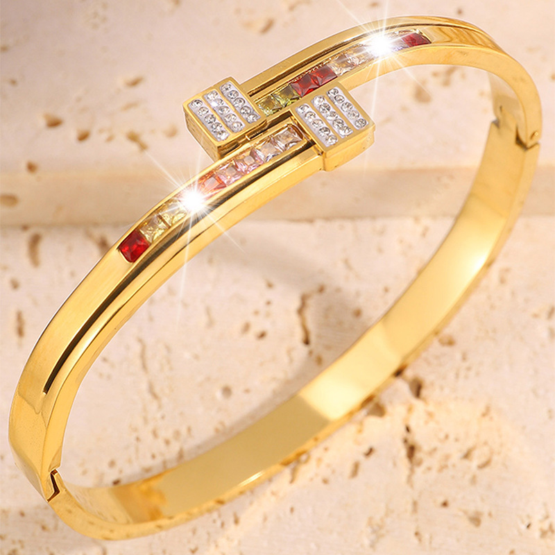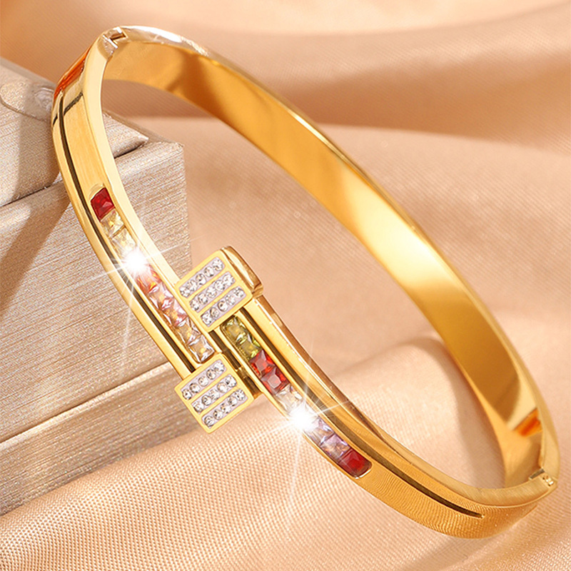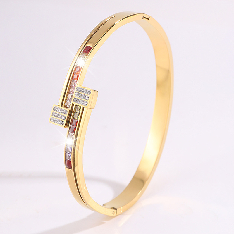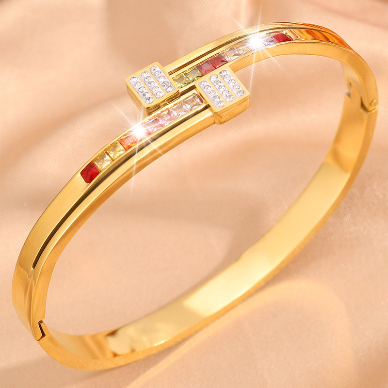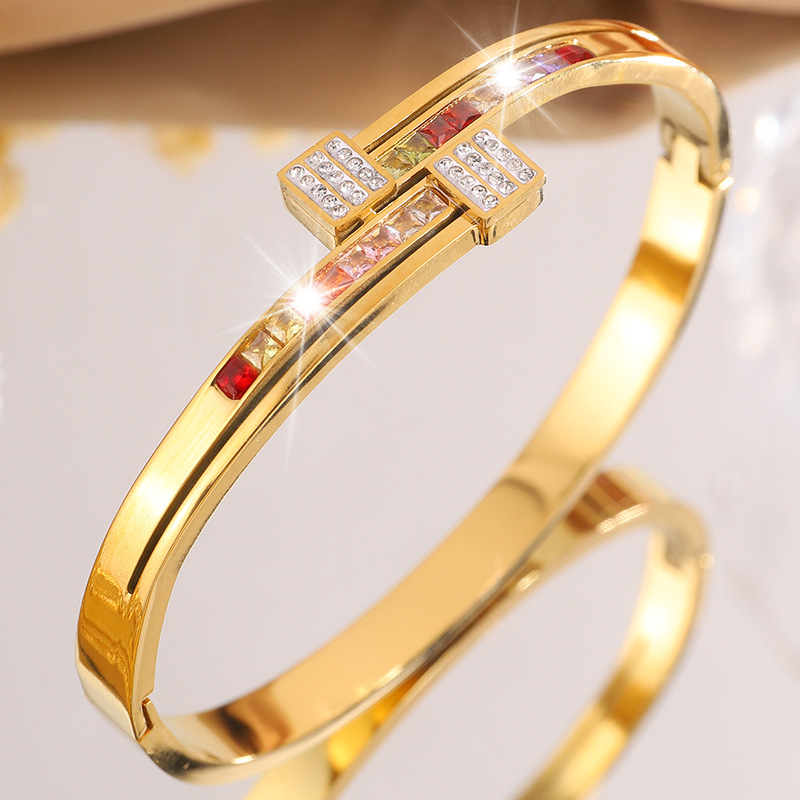 Cruach dhosmálta Bangle, 304 Cruach dhosmálta, 18K ór plátáilte, stíleanna éagsúla do rogha & do bhean & le rhinestone, Díolta De réir PC