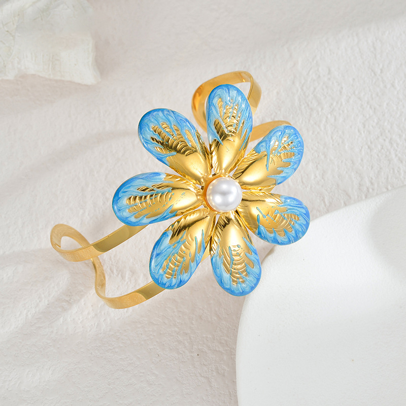 Cruach dhosmálta Bangle, 304 Cruach dhosmálta, le ABS Pearl plaisteach, dath an óir plated, jewelry faisin & dearaí éagsúla do rogha, órga, Díolta De réir PC