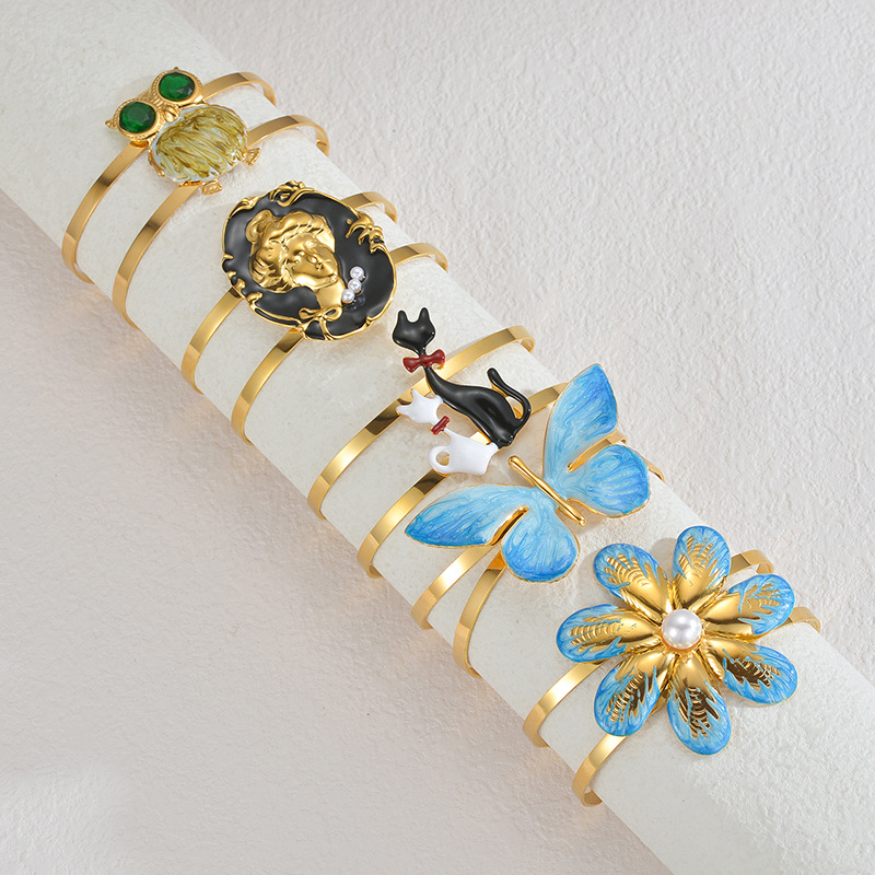 Cruach dhosmálta Bangle, 304 Cruach dhosmálta, 18K ór plátáilte, stíleanna éagsúla do rogha & do bhean & le rhinestone, Díolta De réir PC