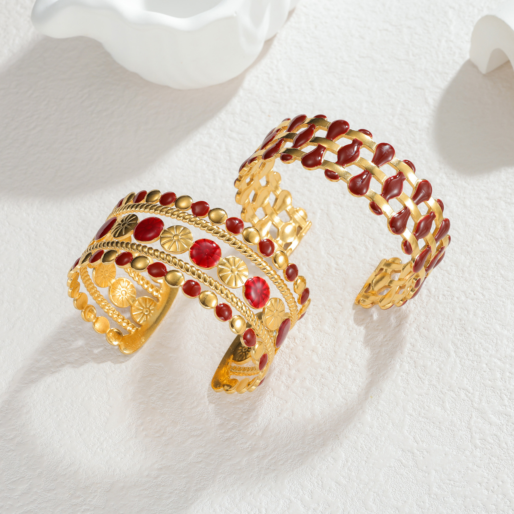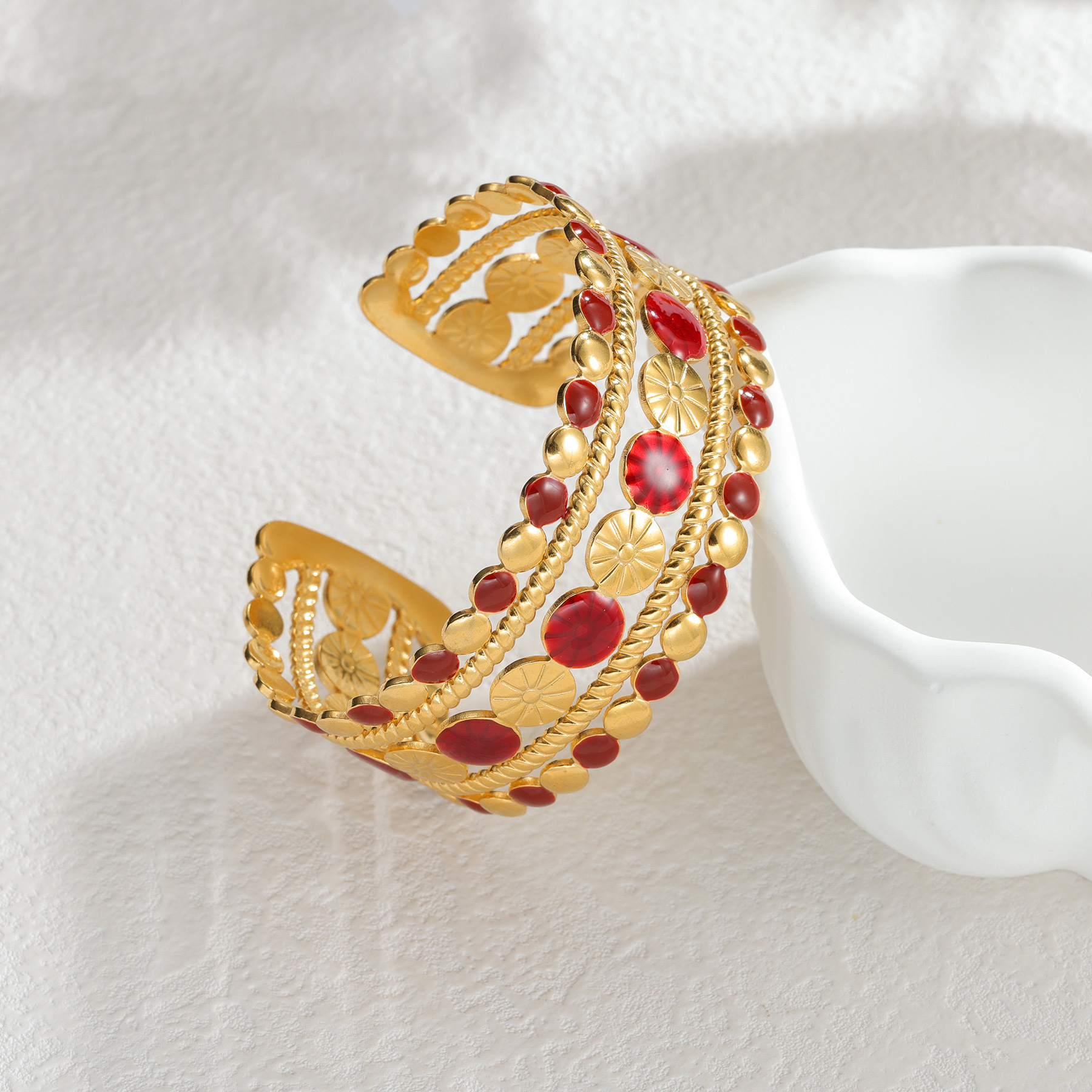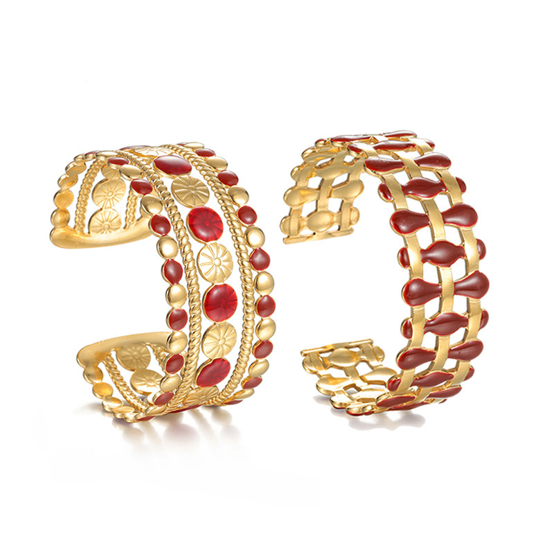 304 Cruach dhosmálta Chufa Bangle, dath an óir plated, stíleanna éagsúla do rogha & do bhean & cruan & log, dearg, Díolta De réir PC