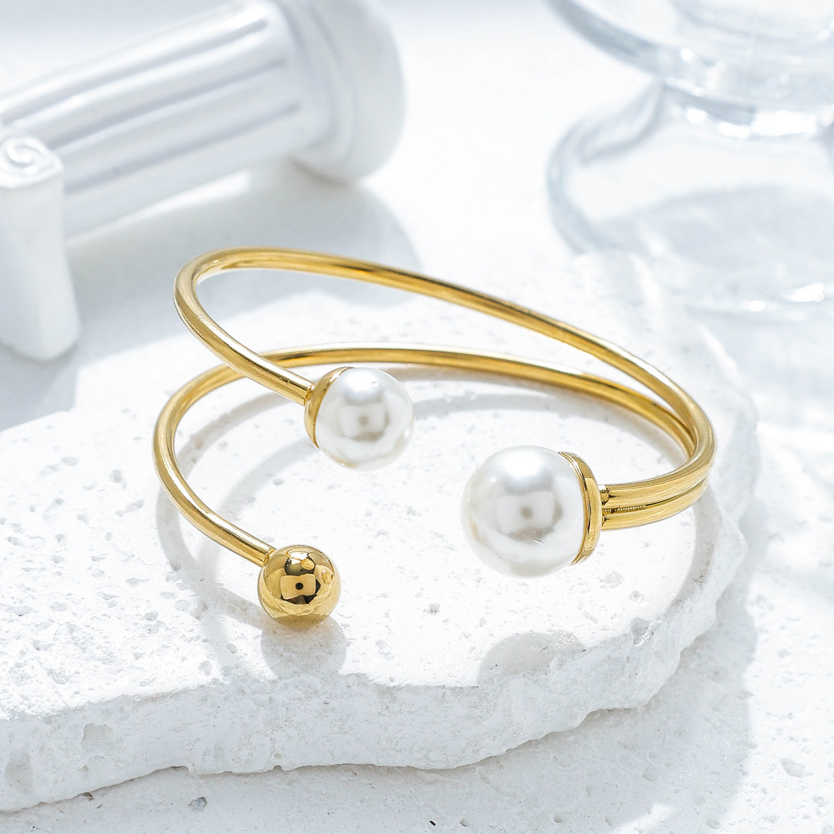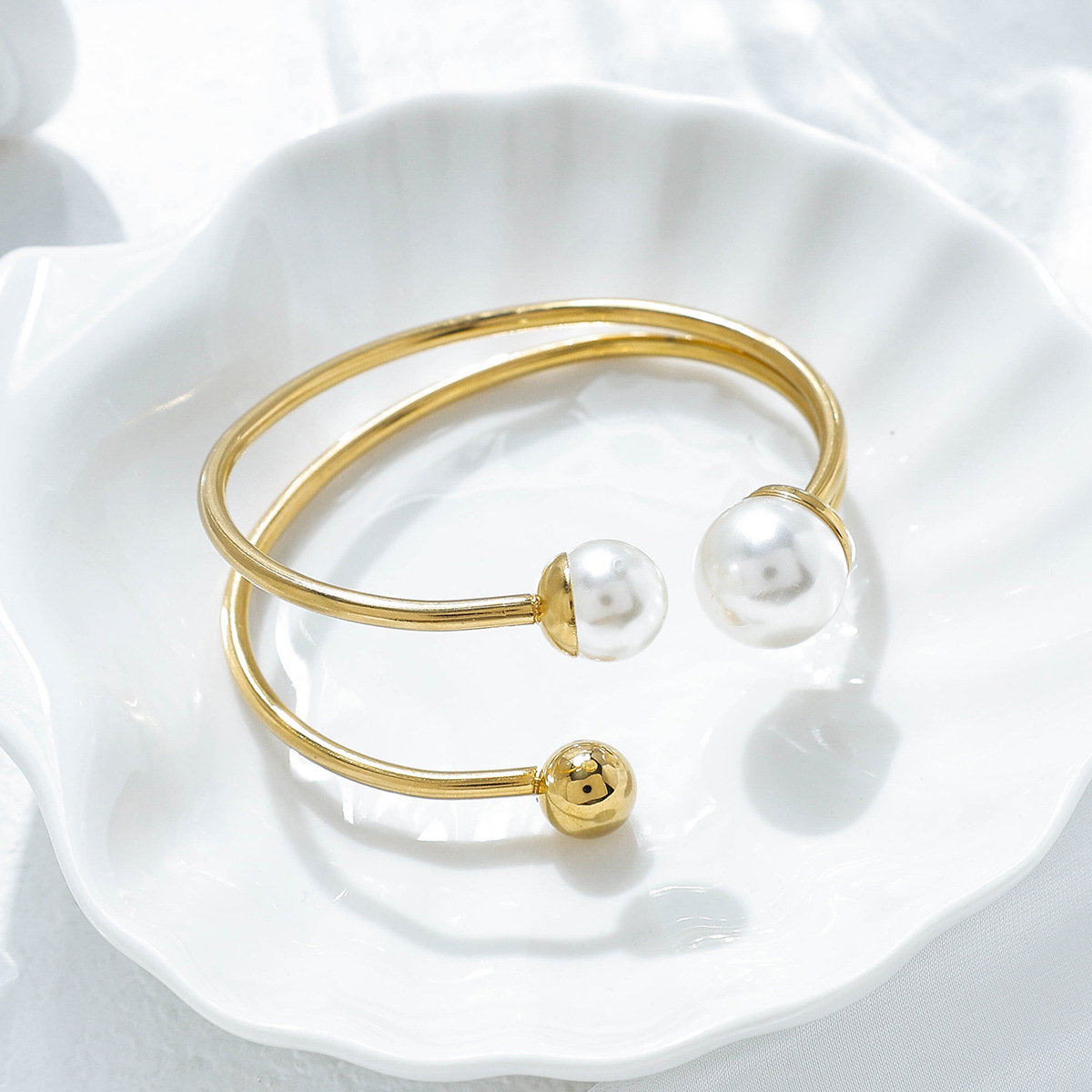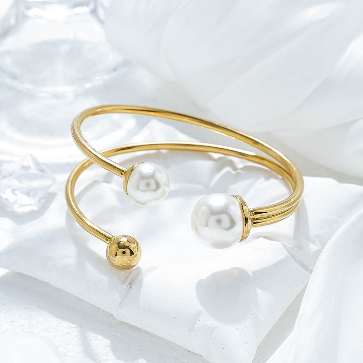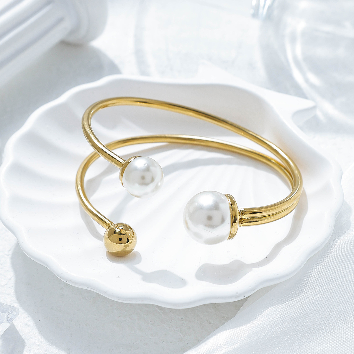 Cruach dhosmálta Bangle, 304 Cruach dhosmálta, le ABS Pearl plaisteach, dath an óir plated, jewelry faisin & dearaí éagsúla do rogha, órga, Díolta De réir PC