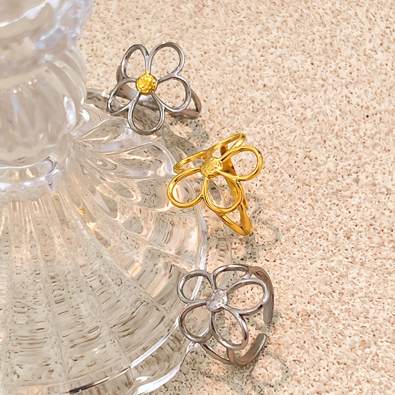 304 Cruach dhosmálta Chufa Ring Finger, Flower, plátáilte, do bhean & log, dathanna níos mó le haghaidh rogha, Díolta De réir PC