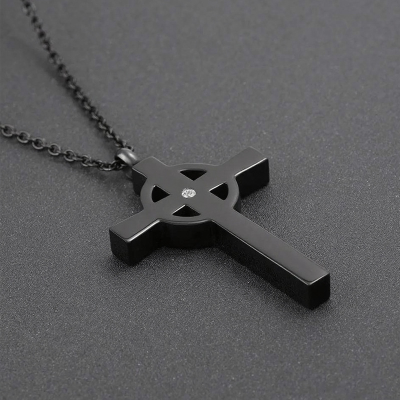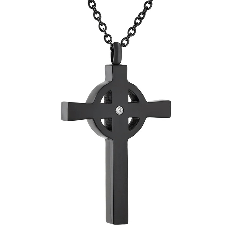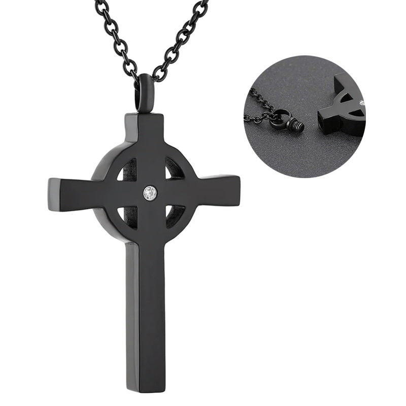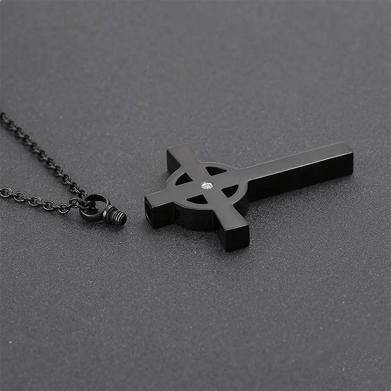 304 Cruach dhosmálta Cinerary Casket siogairlín, Cross, snasta, rud éigin a oscailt agus a chur i & unisex & le rhinestone & log, dubh, Díolta De réir PC