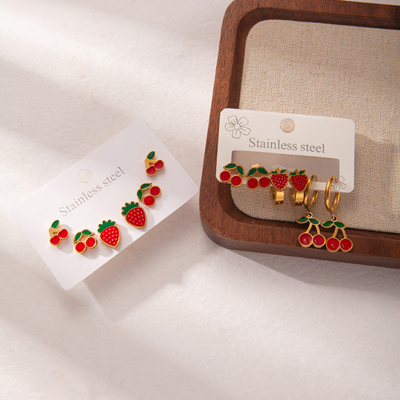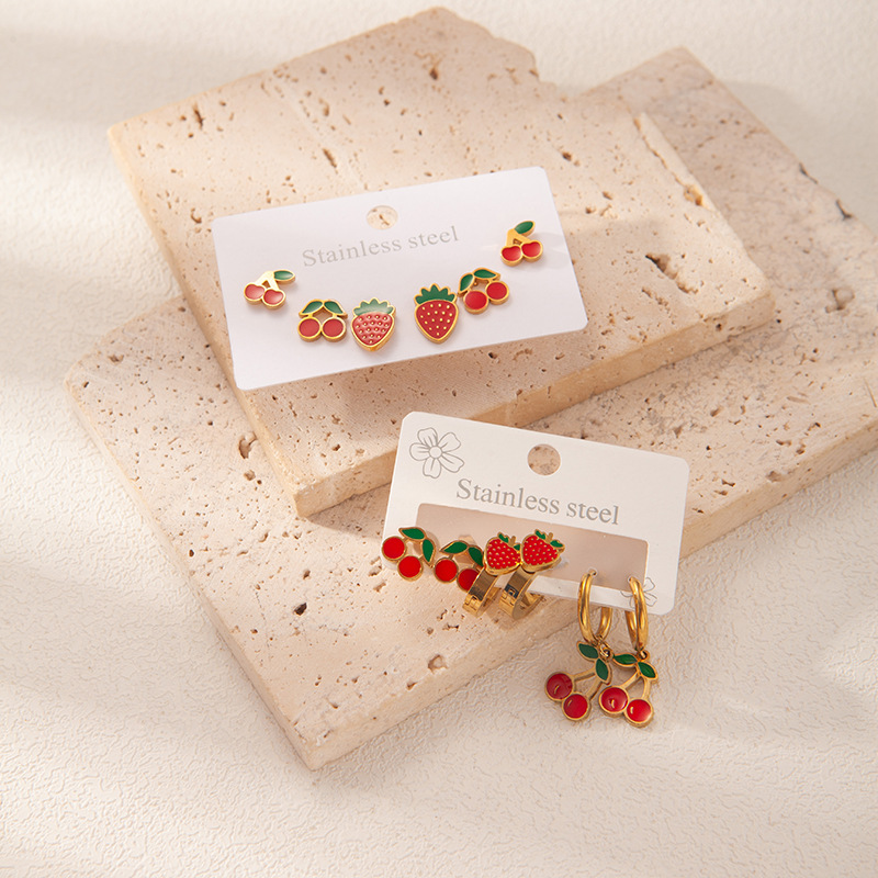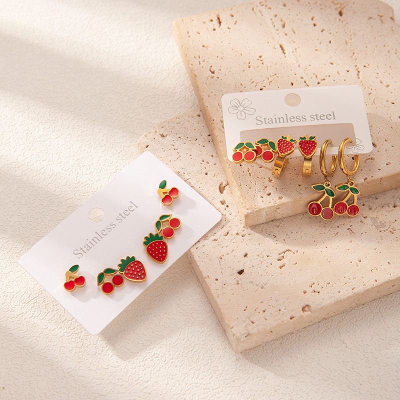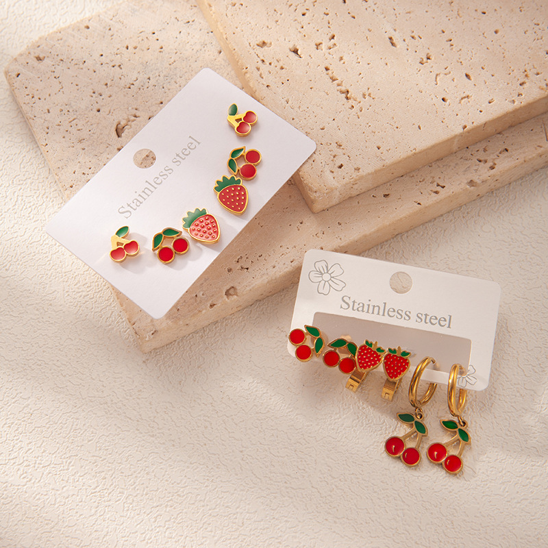 304 Cruach dhosmálta Graí Earring Socraigh, dath an óir plated, trí phíosa & stíleanna éagsúla do rogha & do bhean & cruan, Díolta De réir Socraigh