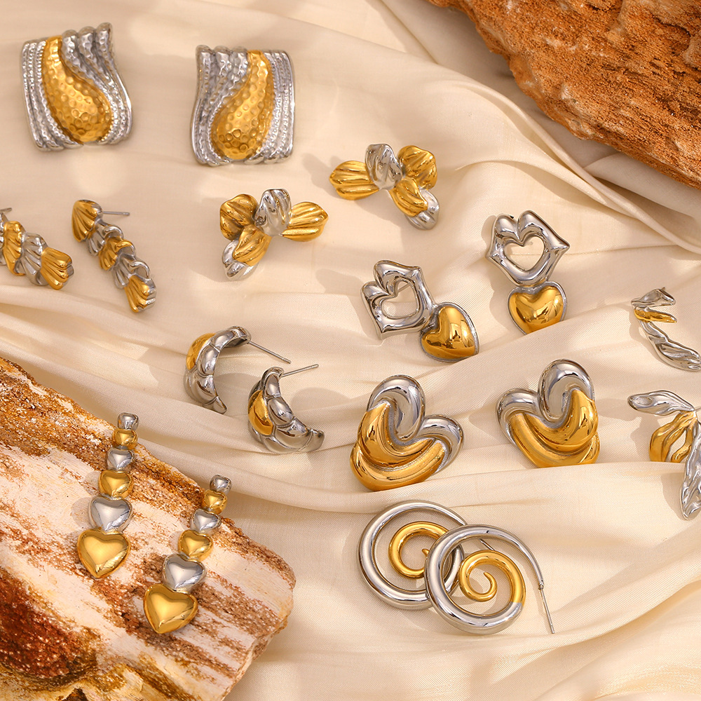 1:Cast five-blade earrings-two colors2:Asymmetrical lily petal stud earrings-two colors4:Two-color wrapped love earrings-two-color5:Two-color golden beanie earrings-two colors6:Mouth love two-color earrings-two-color7:Armor wide horn earrings-two colors8:Christmas tree shaped earrings-two colors