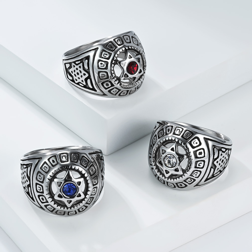 304 Cruach dhosmálta Ring Finger, hexagram, seanré & méid éagsúla do rogha & do fear & le rhinestone, dathanna níos mó le haghaidh rogha, Méid:8-12, Díolta De réir PC