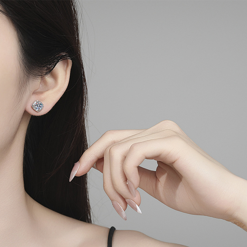 925 Sterling Silver Graí Earring, Cearnóg, platanam plátáilte, ábhair éagsúla do rogha & do bhean, Díolta De réir Péire