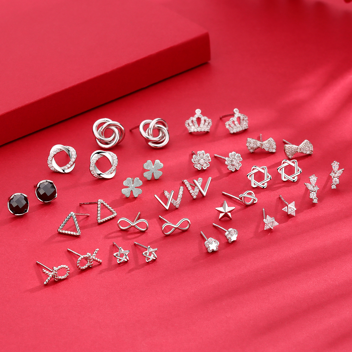 925 Sterling Silver Graí Earring, stíleanna éagsúla do rogha & do bhean & le rhinestone, Díolta De réir Péire