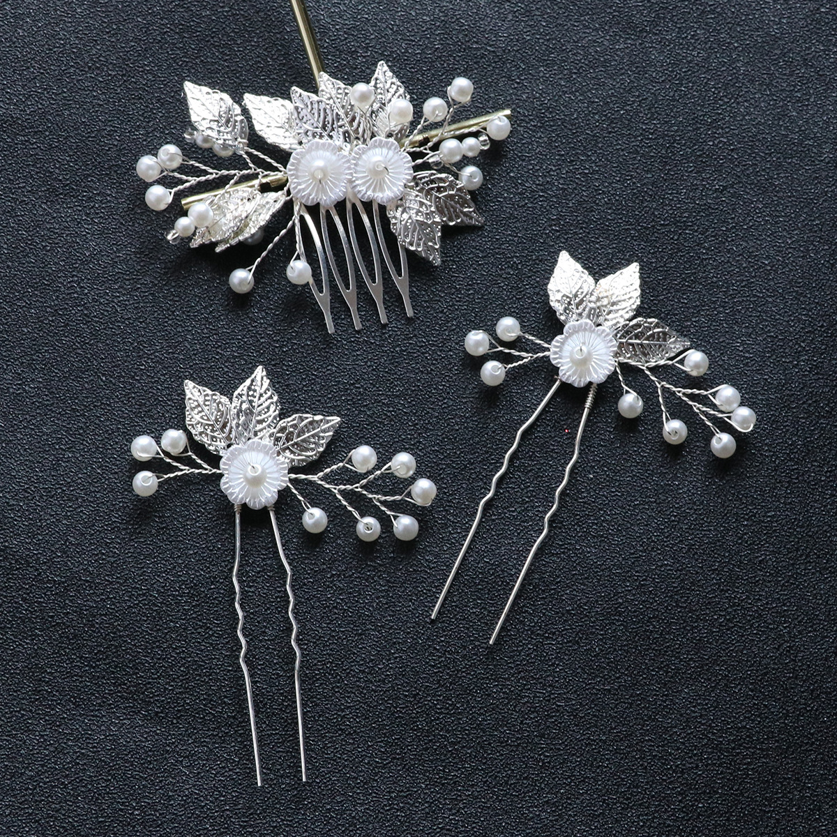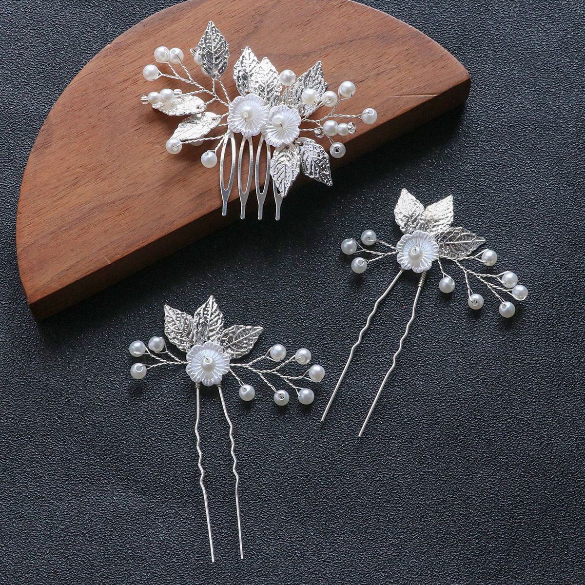 Measctha Hair Accessories, Sinc Alloy, le sreang práis & Pearl Plaisteacha, lámhdhéanta, trí phíosa & jewelry faisin & do bhean, airgid, Díolta De réir Socraigh