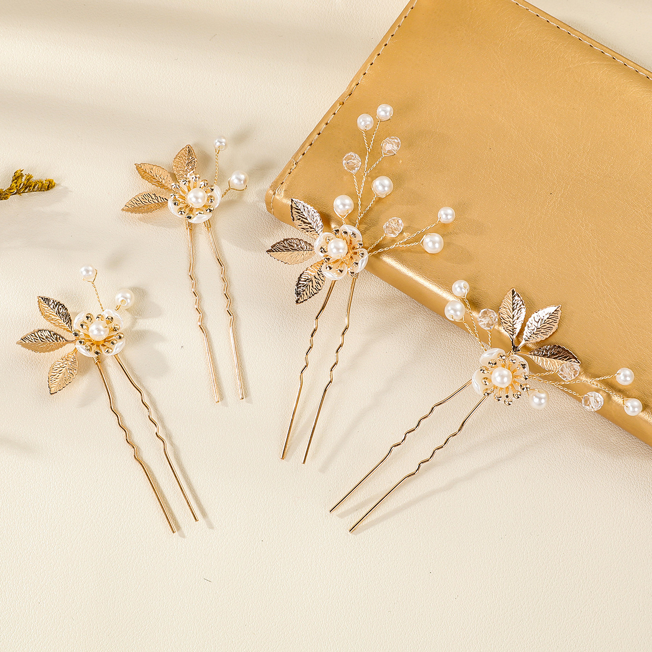 Measctha Hair Accessories, Sinc Alloy, le sreang práis & Polymer Clay & Crystal & Pearl Plaisteacha, lámhdhéanta, 5 phíosa & jewelry faisin & do bhean, órga, Díolta De réir Socraigh