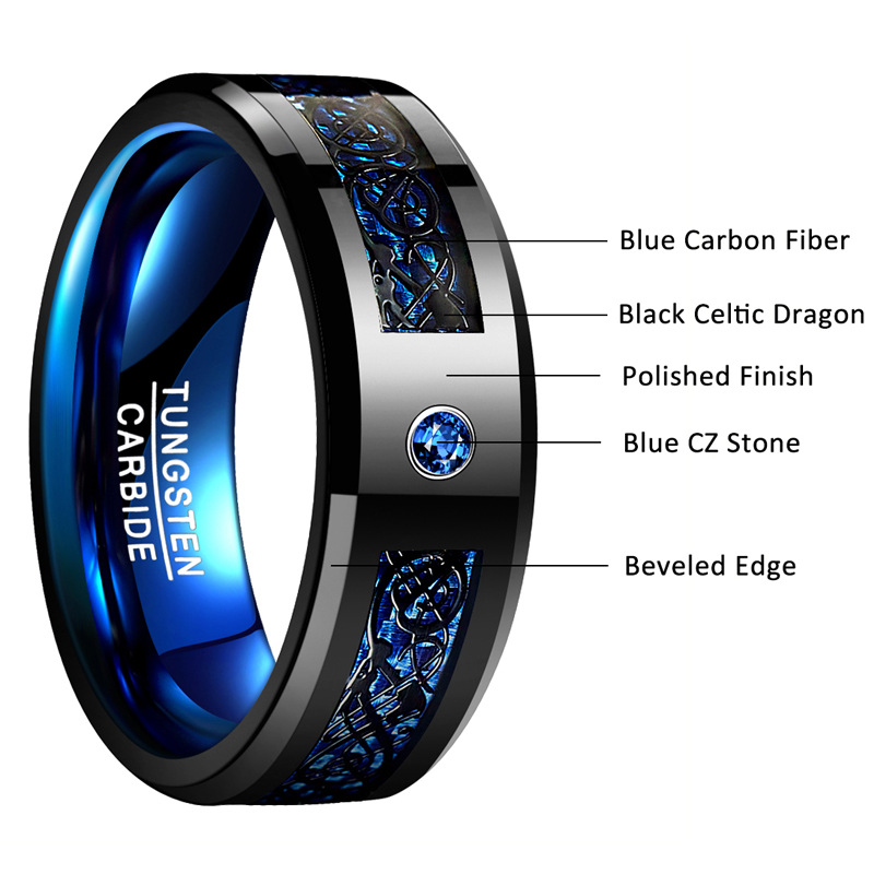 tungstain Cruach Ring Finger, plátáilte, méid éagsúla do rogha & do fear & dhá ton, Width :8mm, Díolta De réir PC