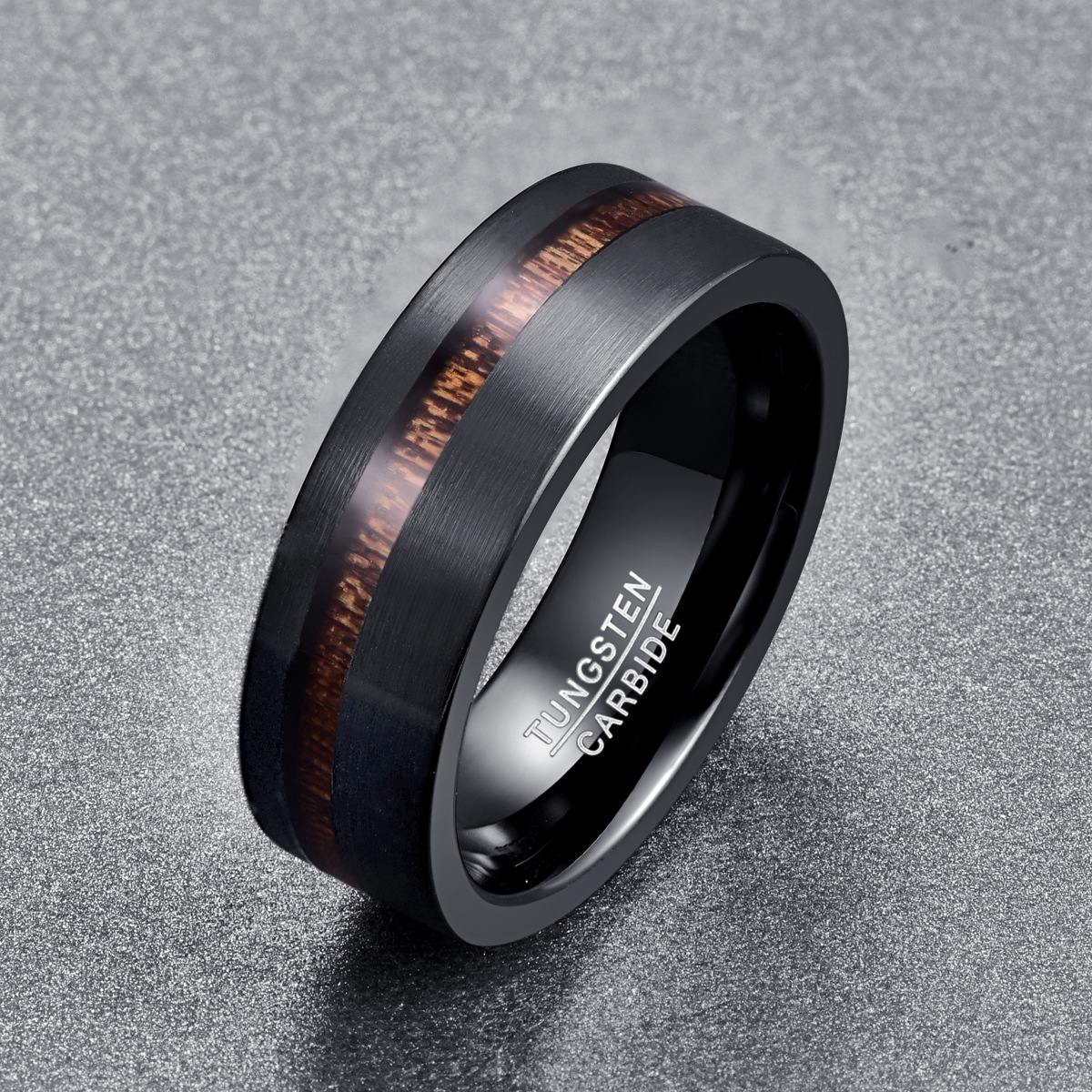 tungstain Cruach Ring Finger, le Adhmad, plátáilte, jewelry faisin & méid éagsúla do rogha & do fear, dubh, wide:8mm, Díolta De réir PC