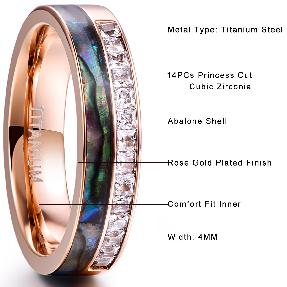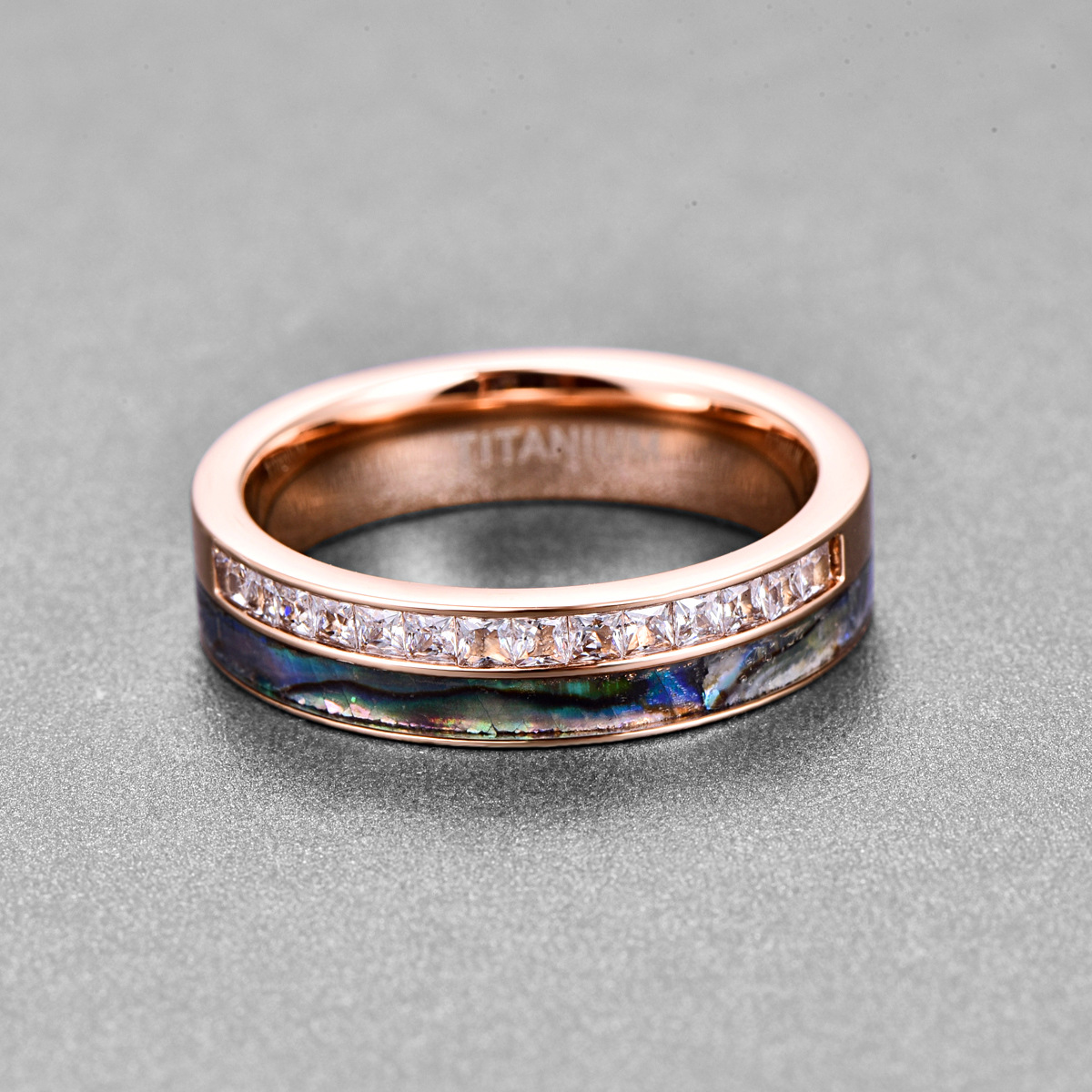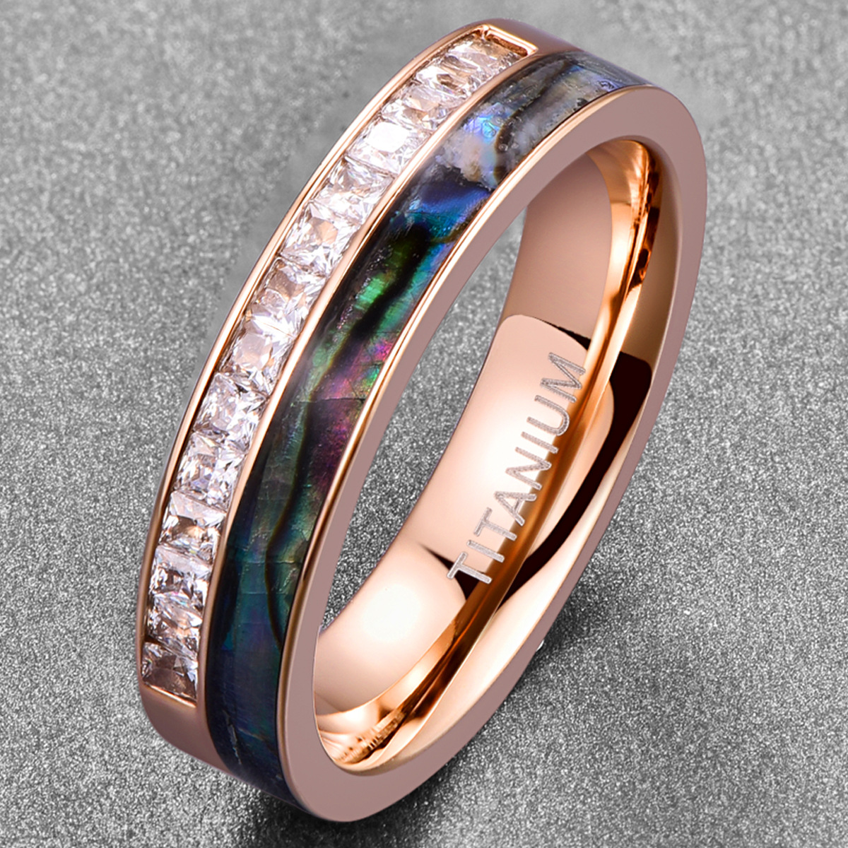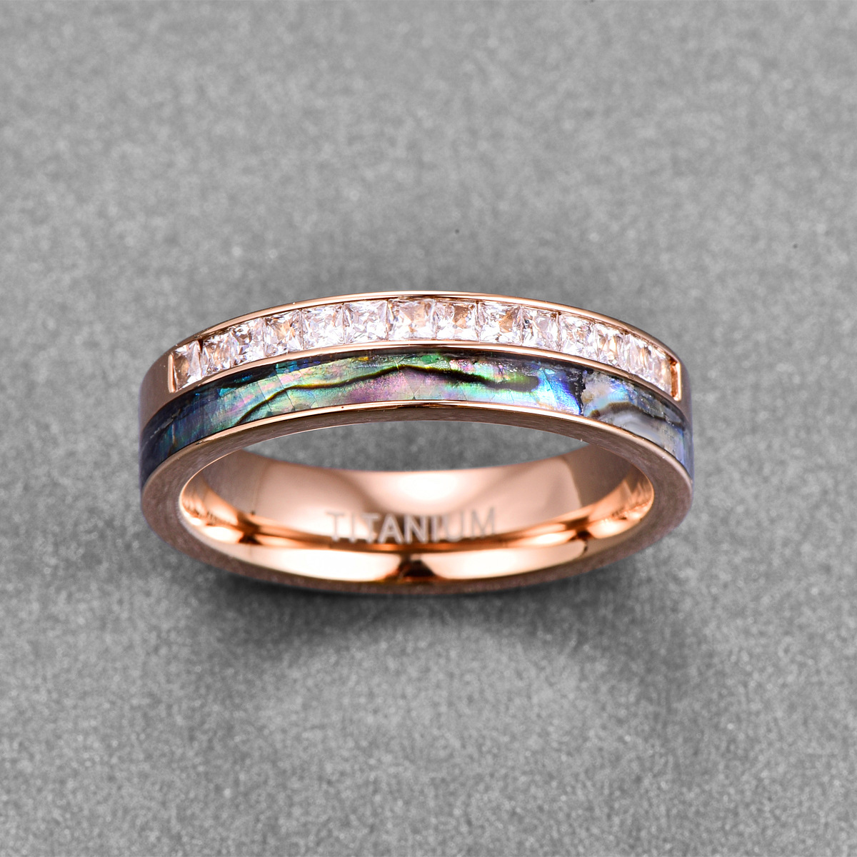 tungstain Cruach Ring Finger, le Ciúbach Zirconia & Chluas mhara Shell, plátáilte, jewelry faisin & unisex & méid éagsúla do rogha, ardaigh dath an óir, Díolta De réir PC