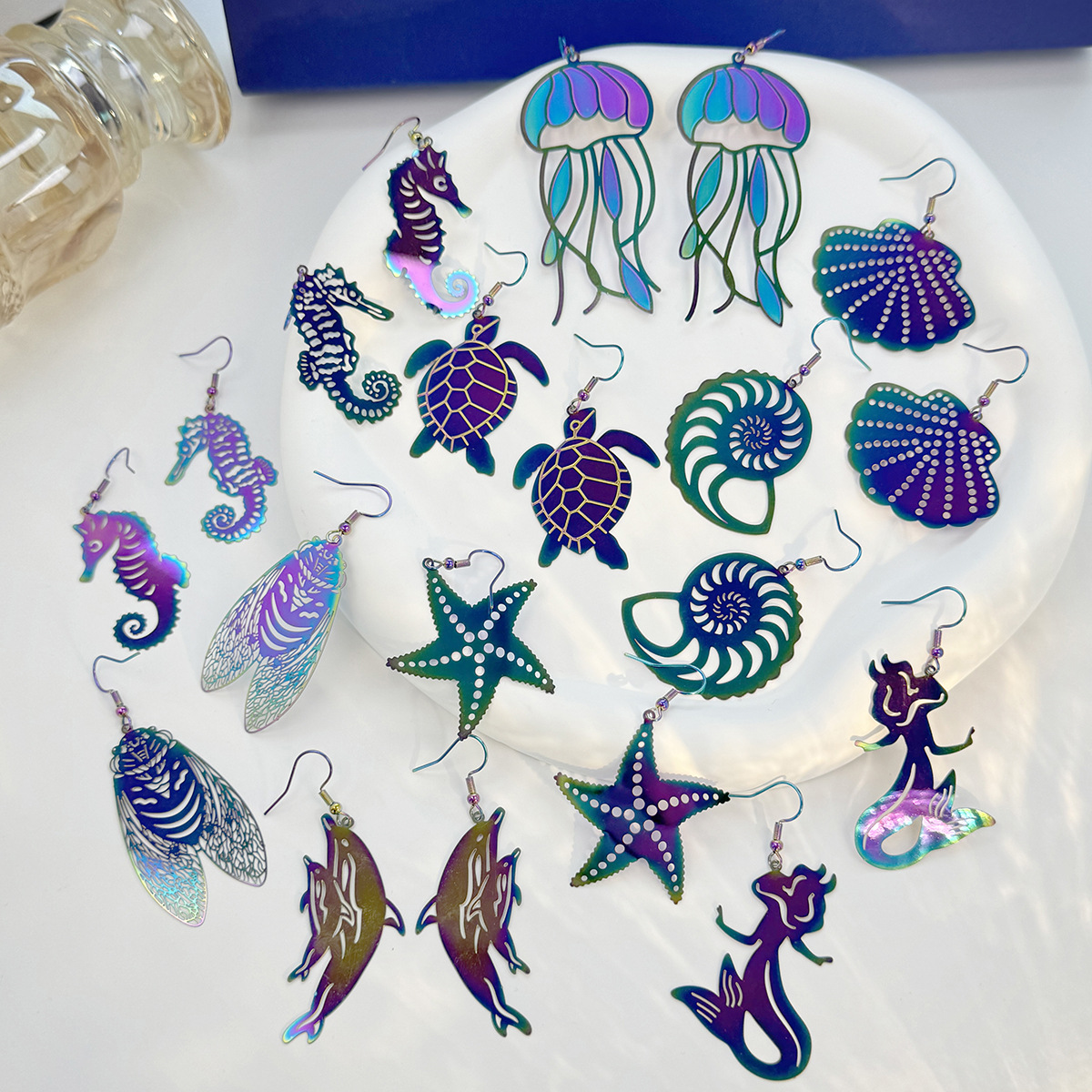 304 Cruach dhosmálta Buail Earring, plátáilte, dearadh farraige & stíleanna éagsúla do rogha & do bhean, il-daite, earring length 50-85mm, Díolta De réir Péire