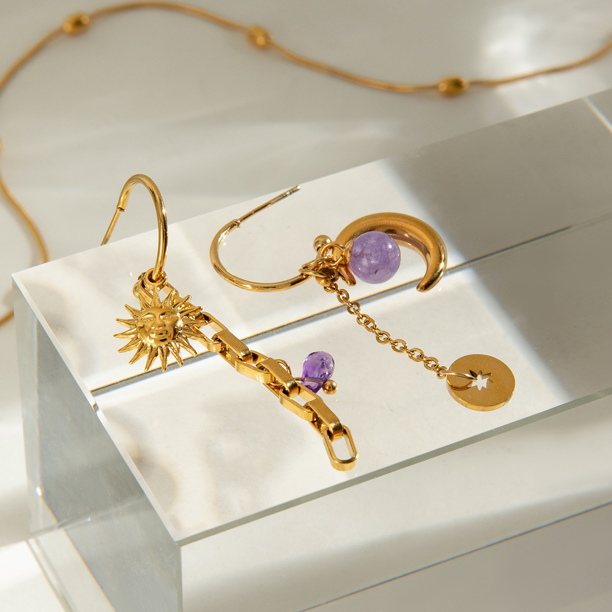 Cruach dhosmálta Buail Earring, 304 Cruach dhosmálta, le Cloch Nádúrtha, dath an óir plated, jewelry faisin, dathanna níos mó le haghaidh rogha, Díolta De réir Péire