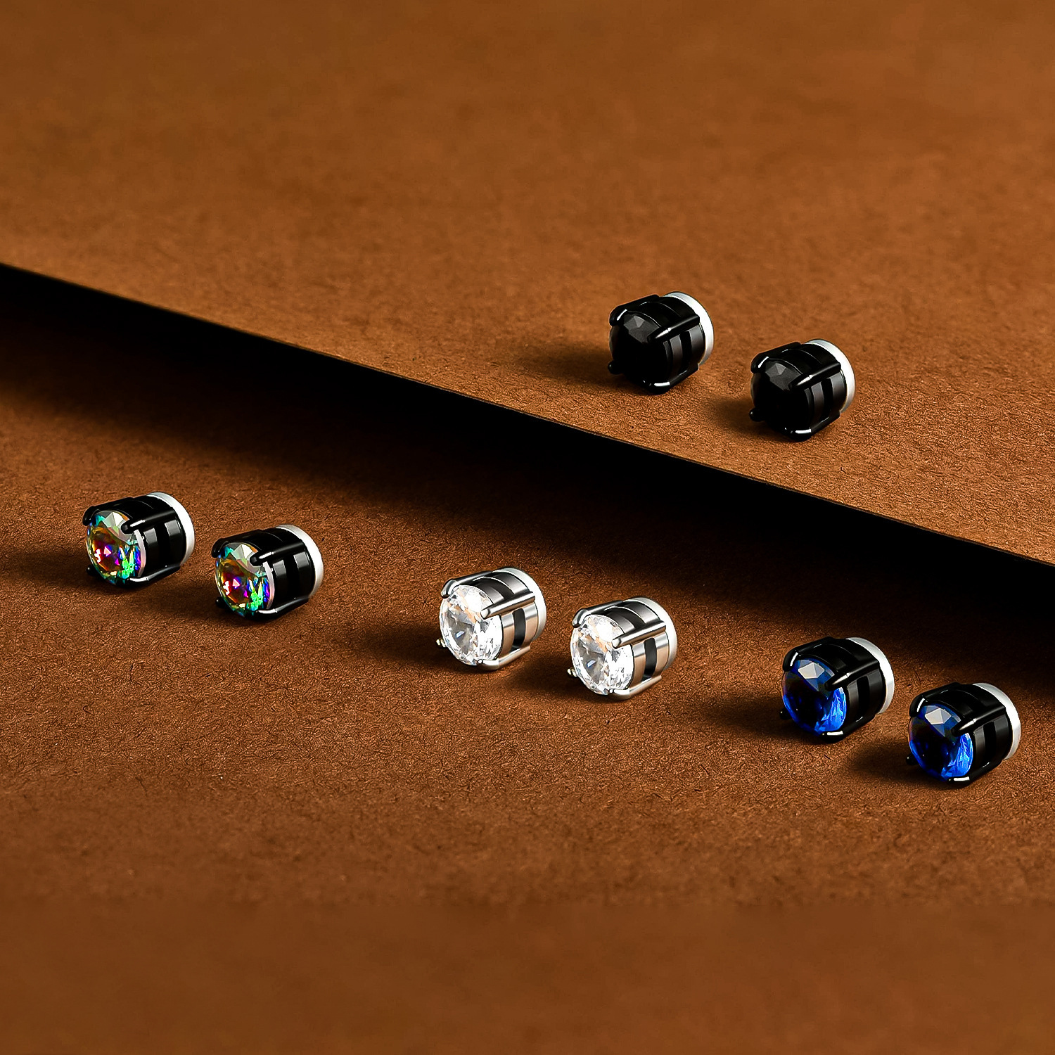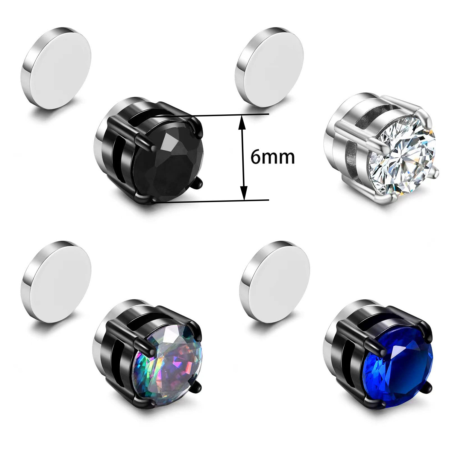 304 Cruach dhosmálta Maighnéadach Graí Earring, plátáilte, unisex & micrea réiteach zirconia ciúbach, dathanna níos mó le haghaidh rogha, 6mm, Díolta De réir PC