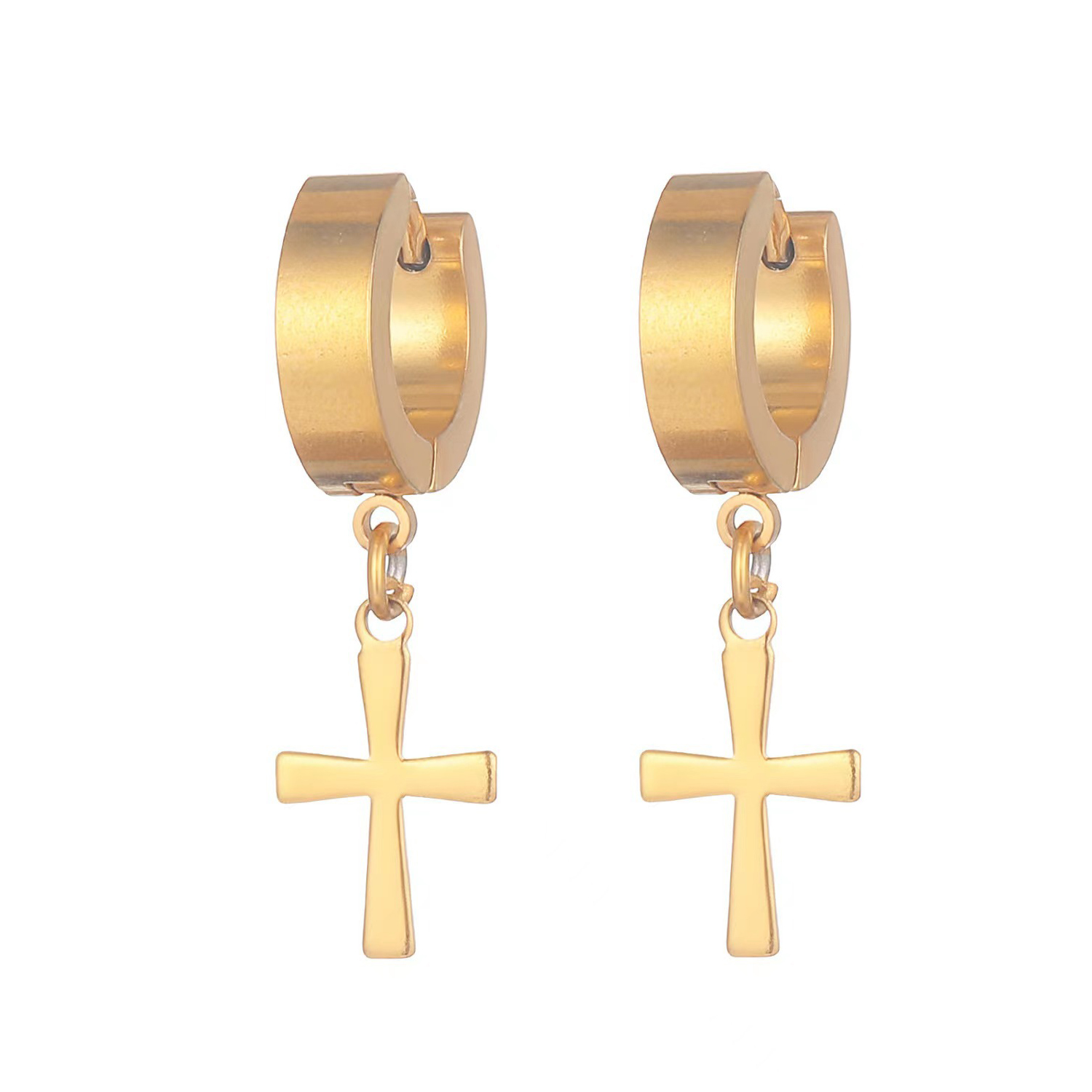 304 Cruach dhosmálta Huggie Hoop Buail Earring, Cross, plátáilte, jewelry faisin & unisex, dathanna níos mó le haghaidh rogha, 14x30mm, Díolta De réir PC