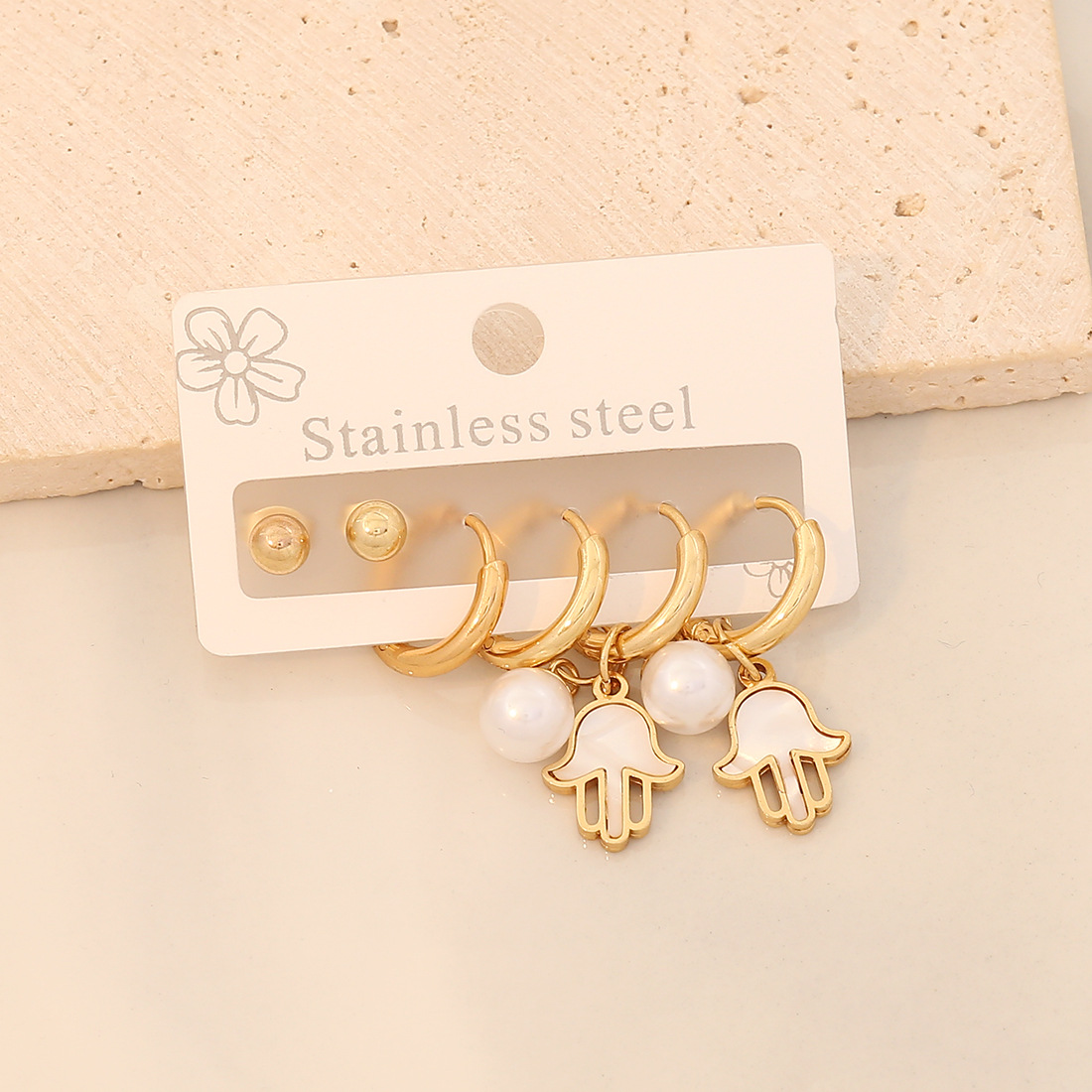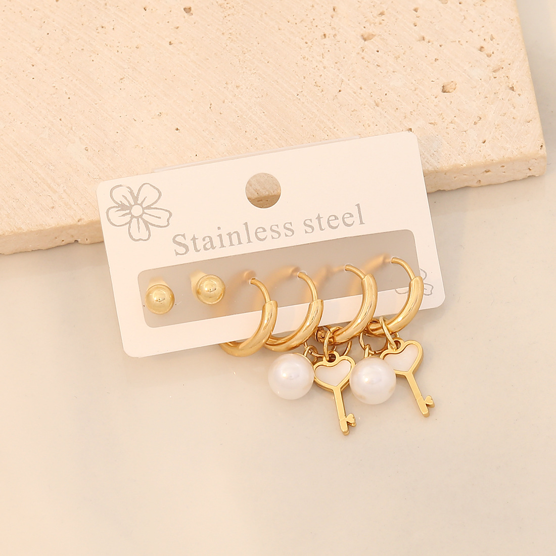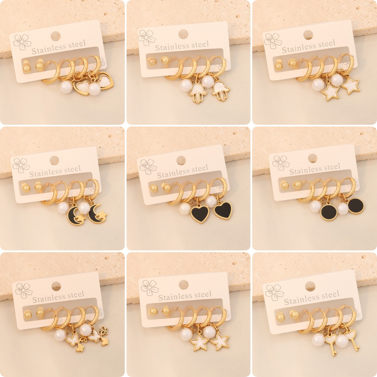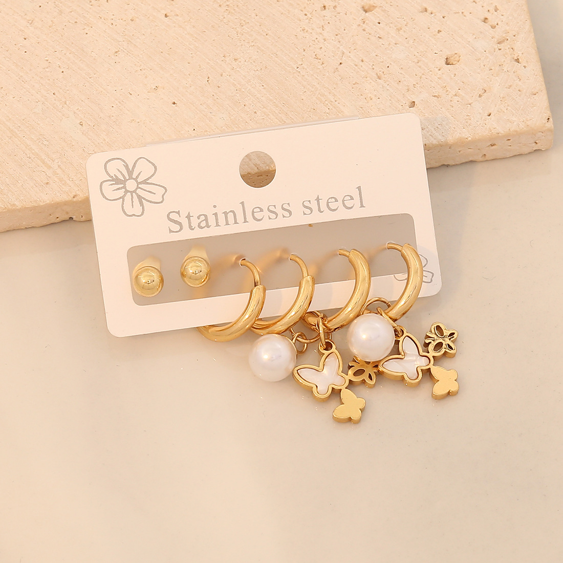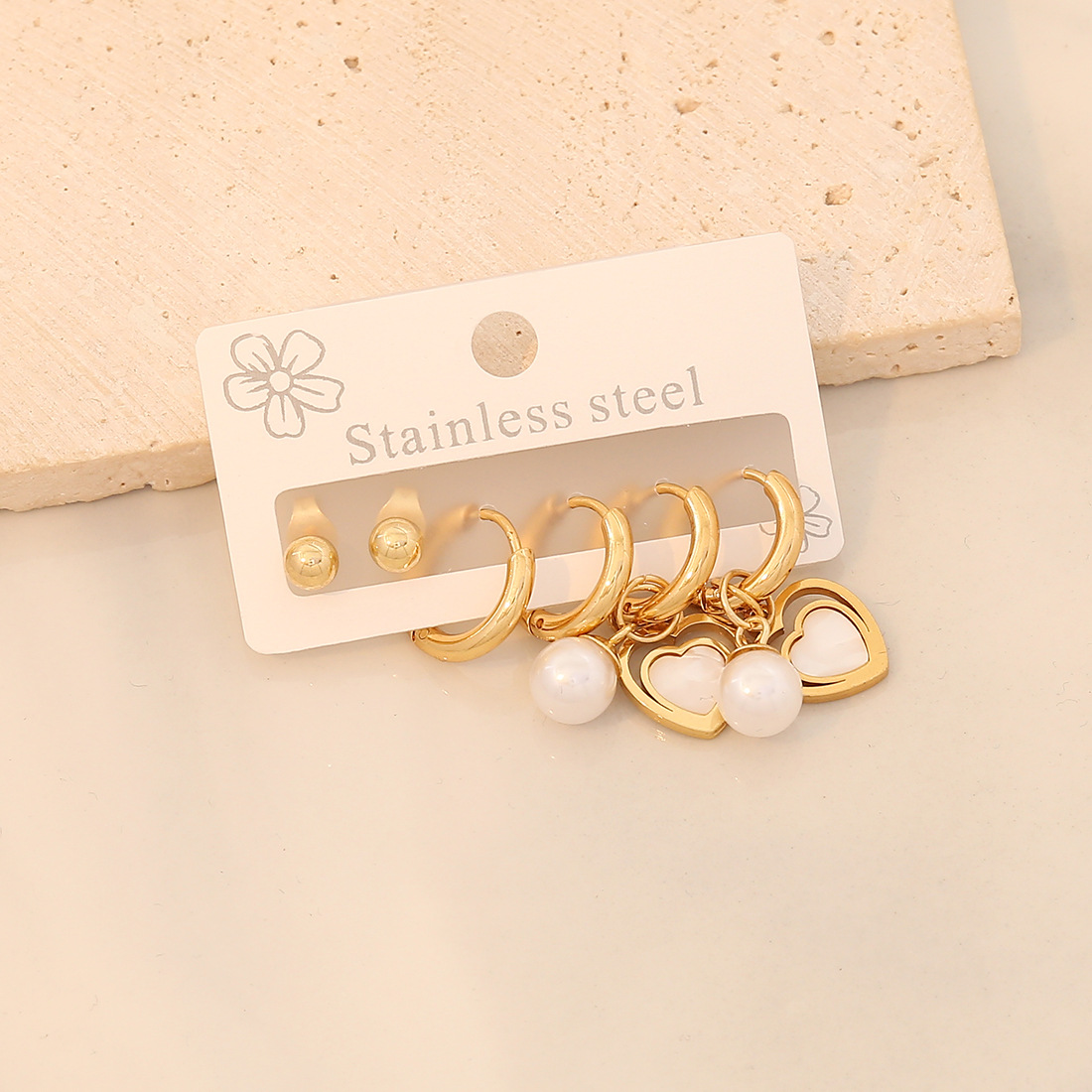 304 Cruach dhosmálta Earring Socraigh, le Pearl Plaisteacha & Aicrileach, plátáilte, trí phíosa & stíleanna éagsúla do rogha & do bhean, órga, Díolta De réir Socraigh