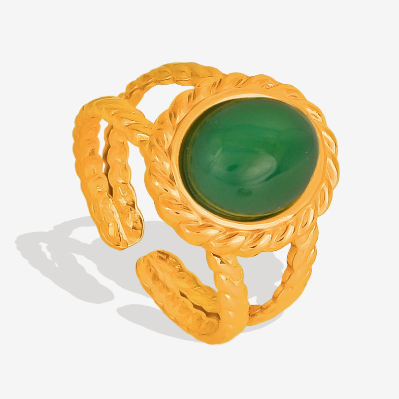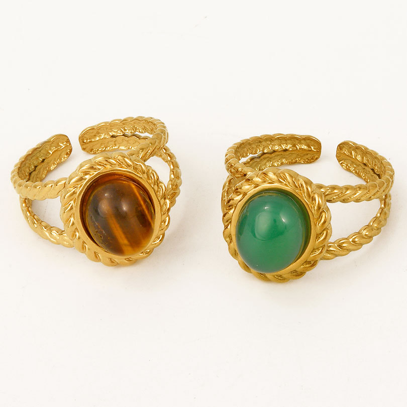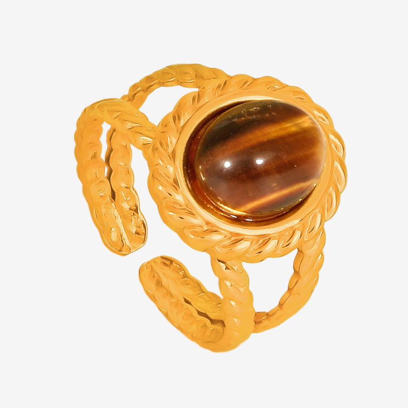 304 Cruach dhosmálta Chufa Ring Finger, le Cloch Nádúrtha, 18K ór plátáilte, ábhair éagsúla do rogha & unisex & log, Díolta De réir PC