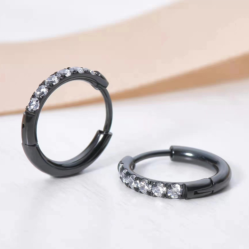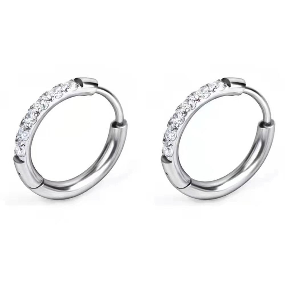 304 Cruach dhosmálta Huggie Hoop Earring, plátáilte, do bhean & le rhinestone, dathanna níos mó le haghaidh rogha, 12mm, Díolta De réir PC