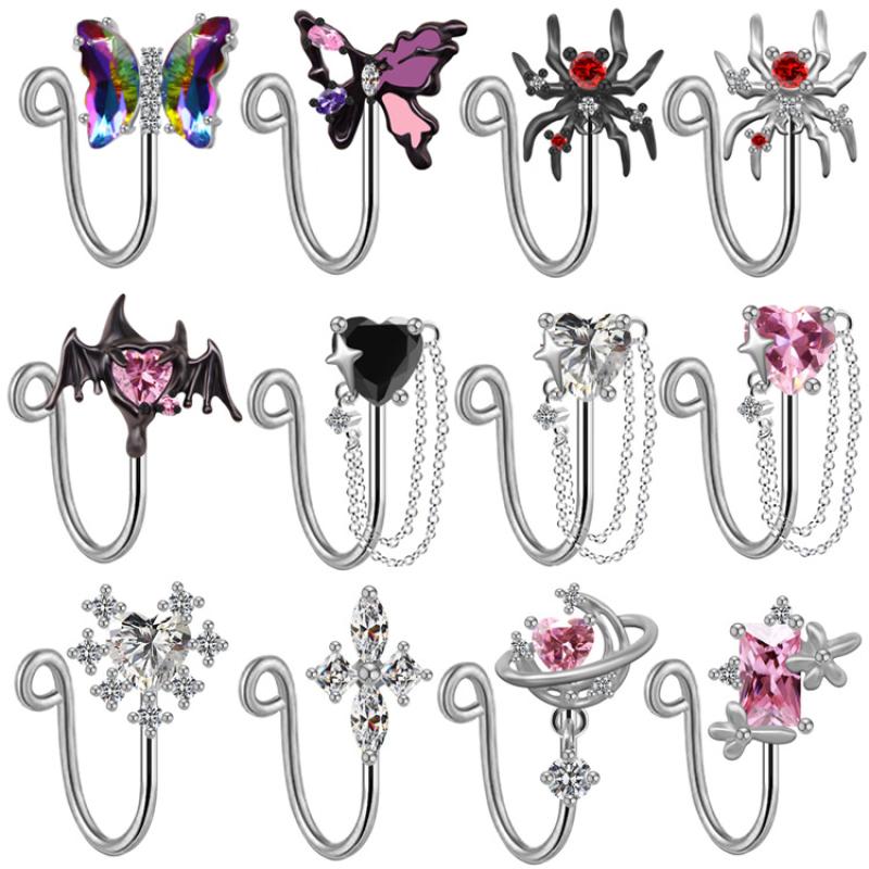 304 Cruach dhosmálta Srón Piercing Jewelry, Féileacán, unisex & stíleanna éagsúla do rogha & micrea réiteach zirconia ciúbach, Díolta De réir PC
